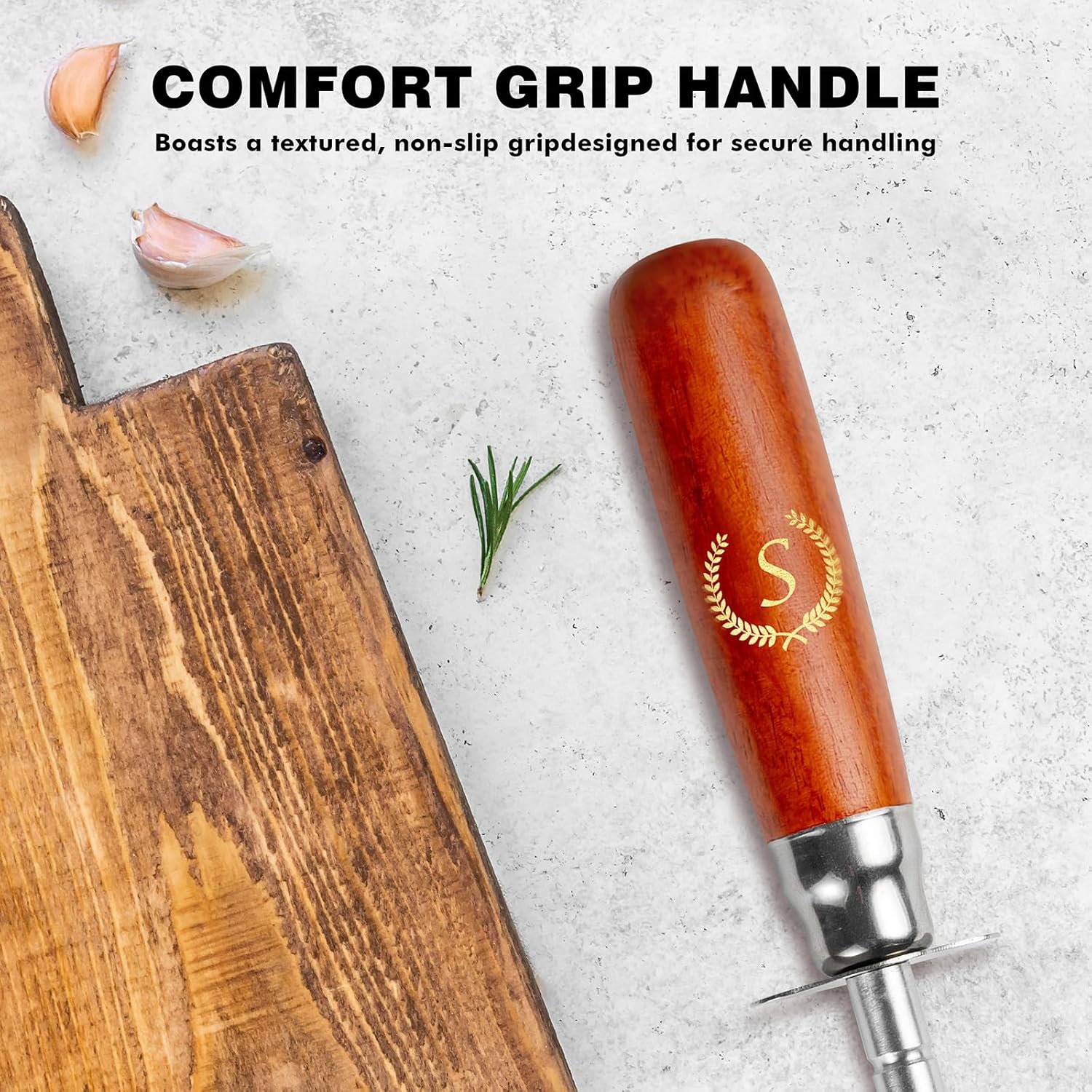 Knife Sharpener Rod, Kitchen Knives Sharpener Carbon Steel Professional Knife Sharpening Steel, Honing Rod with Hanging Holes (13 inches), S