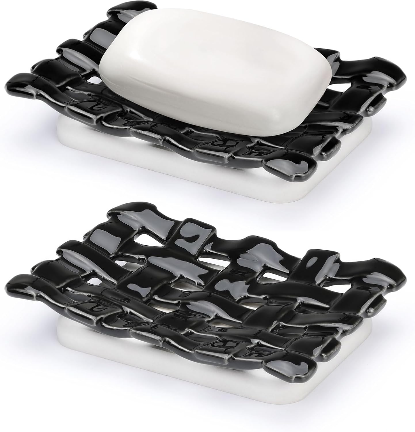 - Effective Drainage: The upper layer of our bar soap holder is made of high-quality ceramic with fine craftsmanship. Its hollow design is not only beautiful and generous, but also can effectively insulate water, keep the soap dry, and prolong the service life. (Tips: The soap may stick to the ceramic dish after use. In next use, please hold the ceramic dish steady to prevent it from falling.)