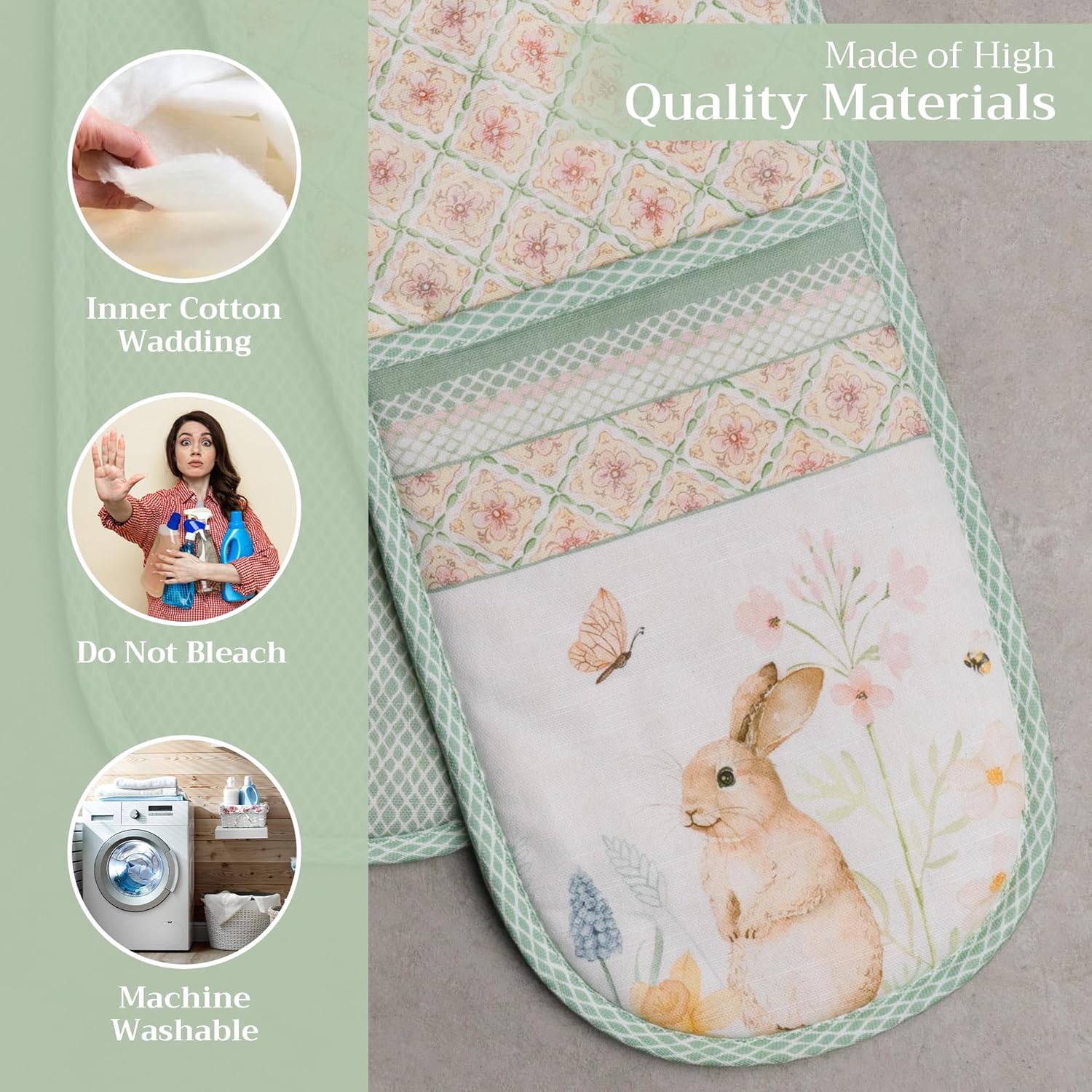 Maison d' Hermine Double Oven Mitts 100% Cotton 7"x35" Double Oven Mitt Heat Resistant BBQ Cooking Gloves with Loop, Baking, Grilling, Home, Kitchen, Handling Hot Pans Spring Summer (Easter Dew)