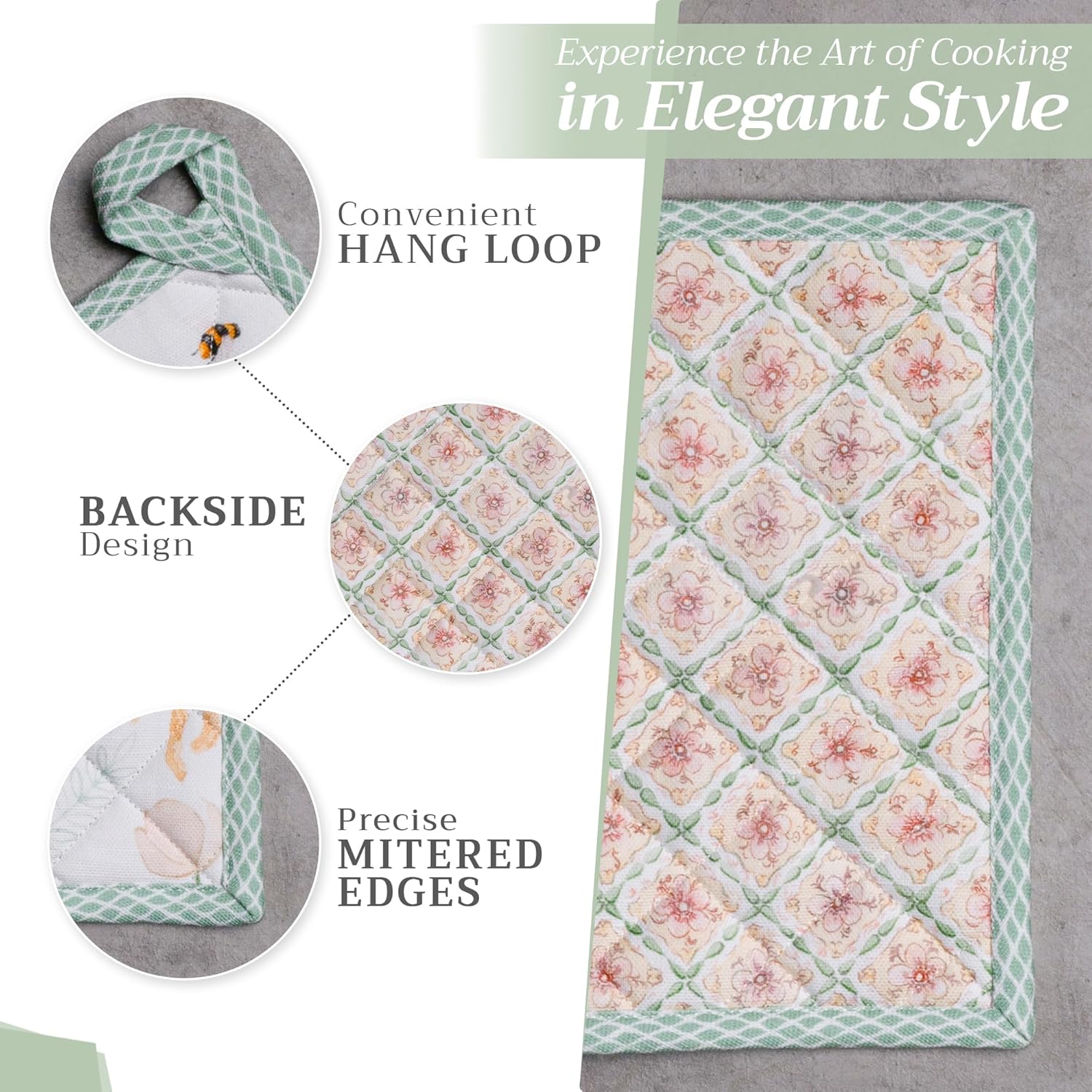 - 100% Quilted cotton: Made from premium quilted cotton, our pot holder ensures safe handling of hot pans or dishes. The soft, durable build provides excellent heat resistance and grip—perfect for everyday cooking and baking needs