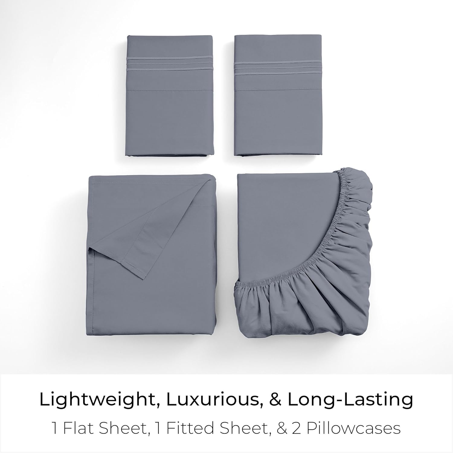 Mellanni King Sheets Set - 4 PC Iconic Collection Bedding - Hotel Luxury, Extra Soft, Cooling Bed Sheets - Wrinkle, Fade, Stain Resistant (King, Mineral Gray)