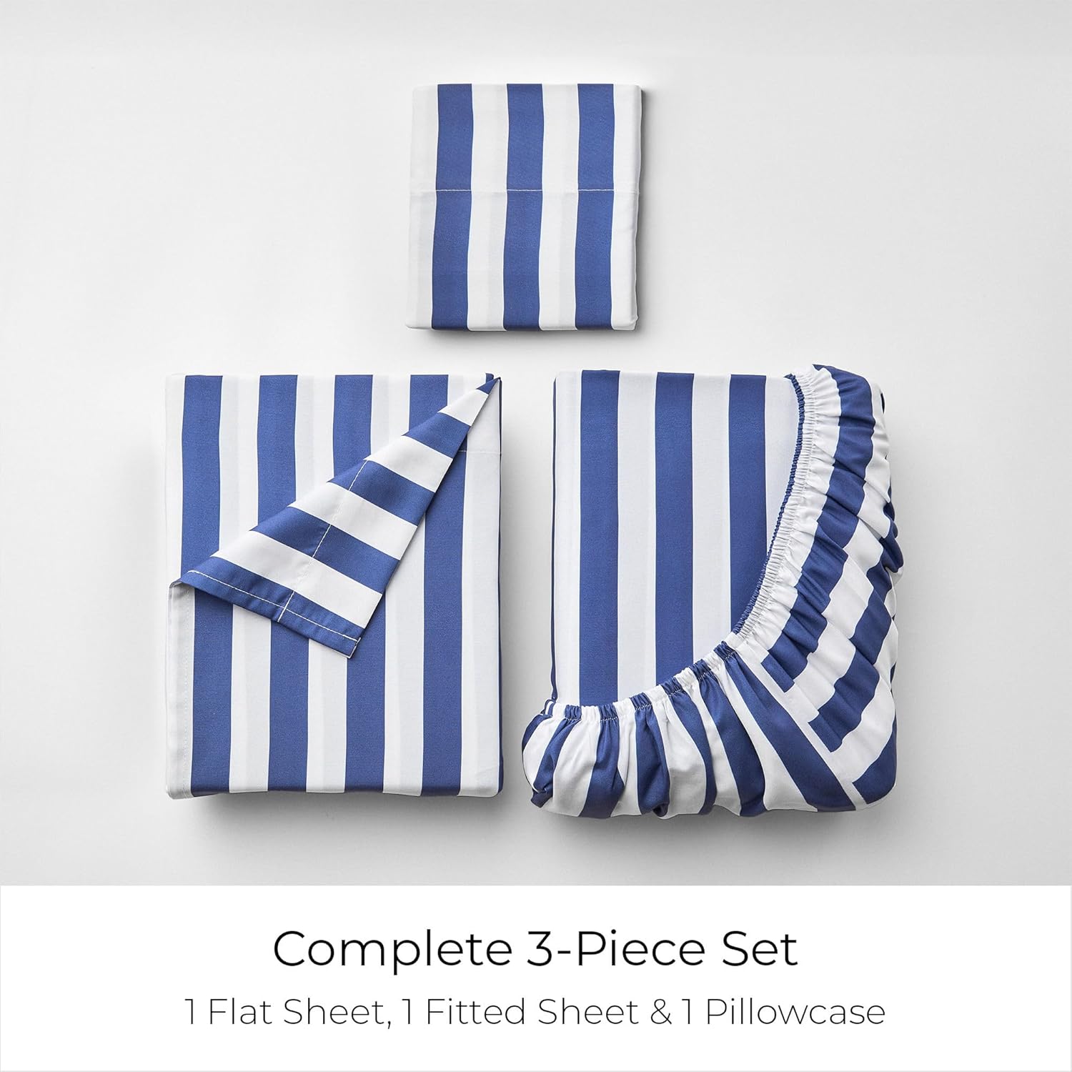 Mellanni Twin Sheets Set - 3 PC Iconic Collection Bedding - Hotel Luxury, Extra Soft, Cooling Bed Sheets - Wrinkle, Fade, Stain Resistant (Twin, Oxford Stripe Blue Nova)