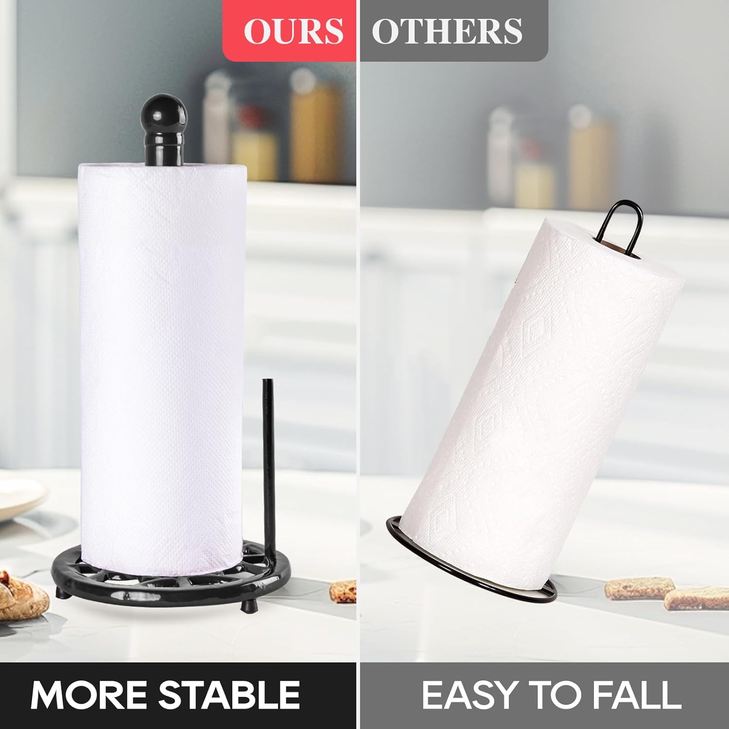 - Sturdy & Stable: Metal paper towel holder made of cast iron material which is Rustless, Fastness, Wear-resistant, Heat-resistant, Stable shape, Strong tension, Anti-aging, and Long service life. Wipe clean with a damp cloth