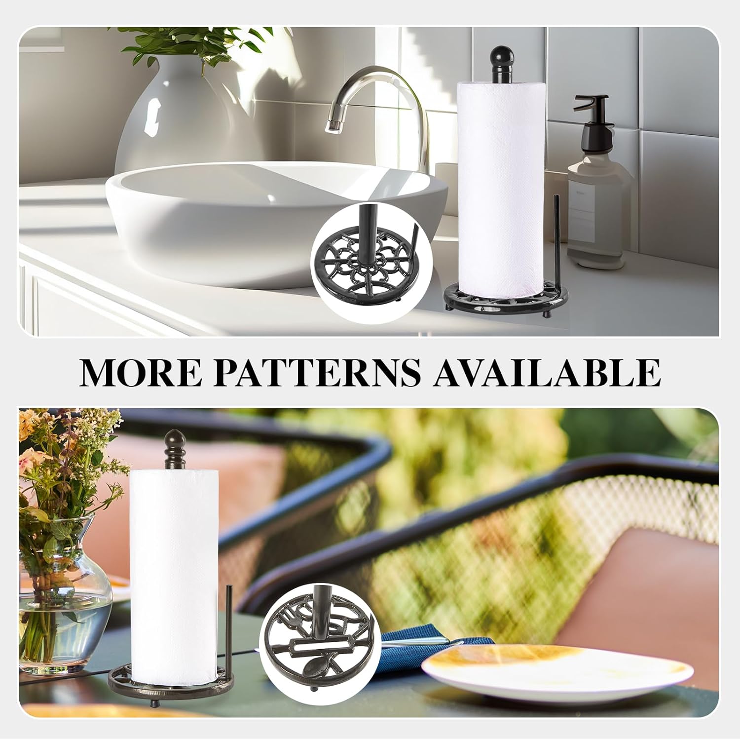 - Decorative & Practical: Vintage paper towel holder will be charming in your kitchen countertop as home decor. The compact design takes up minimal space while still providing room to store one roll of paper towels; Fits both standard and large jumbo rolls of disposable paper towels