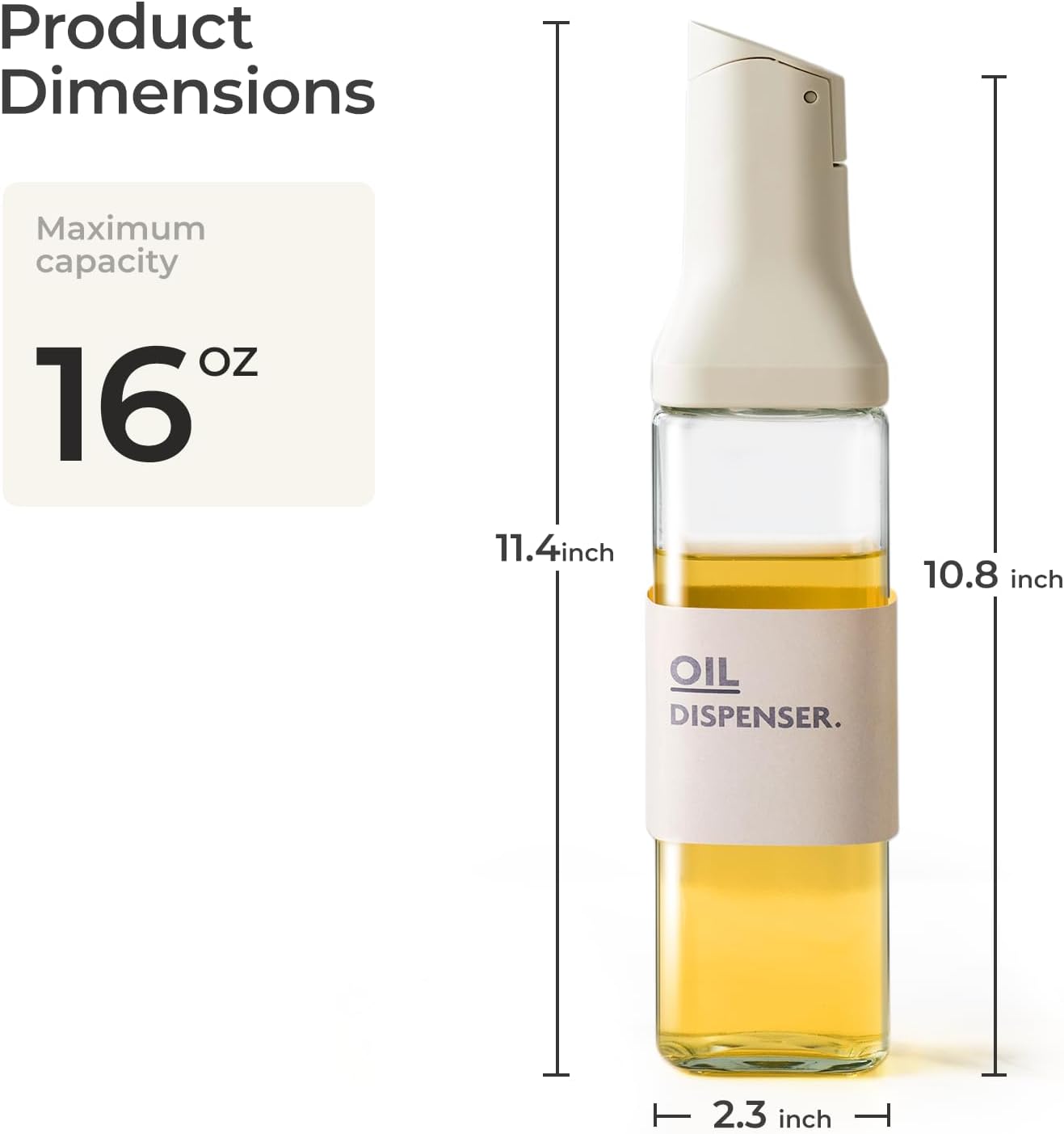 Olive Oil Dispenser for Cooking - 16oz Leakproof Glass Oil Dispenser Bottle with Gravity Spout, Air Fryer, BBQ, Healthy Salad & Non-Stick Pans, BPA-Free, Easy to Refill and Use, Light Grey