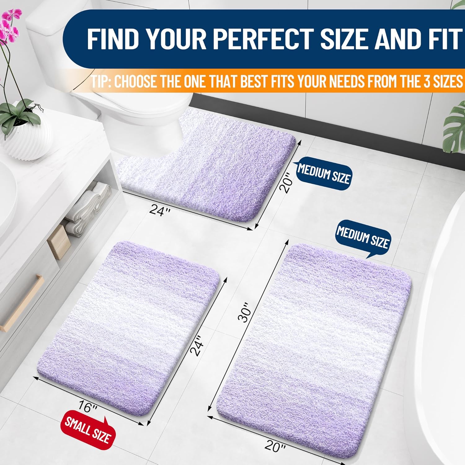 OLANLY Bathroom Rugs Mat 24x16, Extra Soft Absorbent Microfiber Bath Rugs, Rubber Backing, Quick Dry, Machine Washable Bath Mat for Bathroom Floor, Tub and Shower, Home Decor Accessories, Light Purple