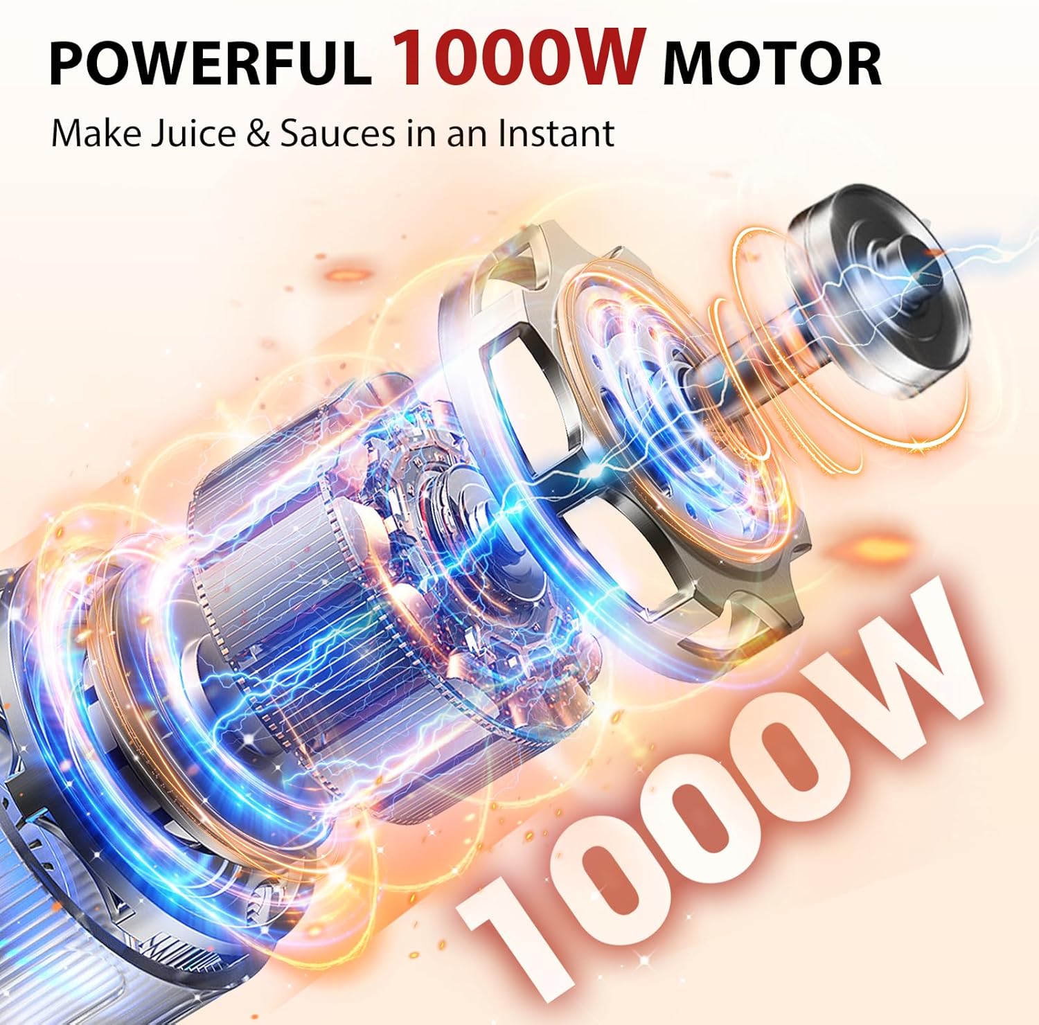 - 1000W Motor & 304 Stainless Steel 4-tip Blade: Compared with other 300-500W motors, upgraded KOIOS handheld blender is equipped with a 1000W all-copper motor, which is more powerful and has a stronger ability to crush food. With 304 food-grade stainless steel blades, this material has good oxidation resistance and high temperature resistance. Safe to use even in hot soup.