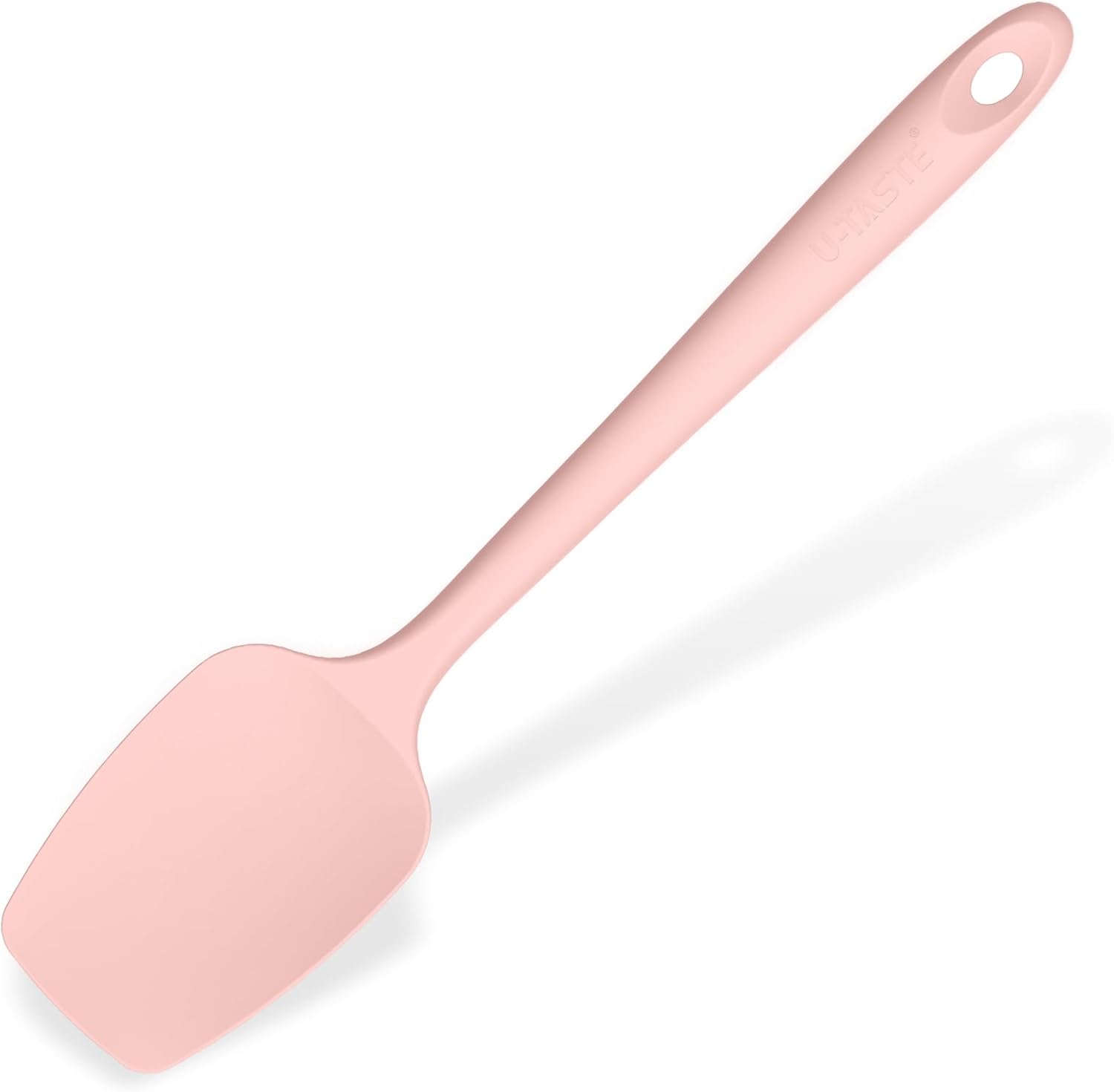 Heat Resistant Silicone Spoon Spatula: U-Taste 600ºF High Heat Flexible 11.38in Silicon Mixing Stirring Cooking Scraping Baking Bowl Scraper, Seamless for Kitchen Nonstick Cookware (Pink)