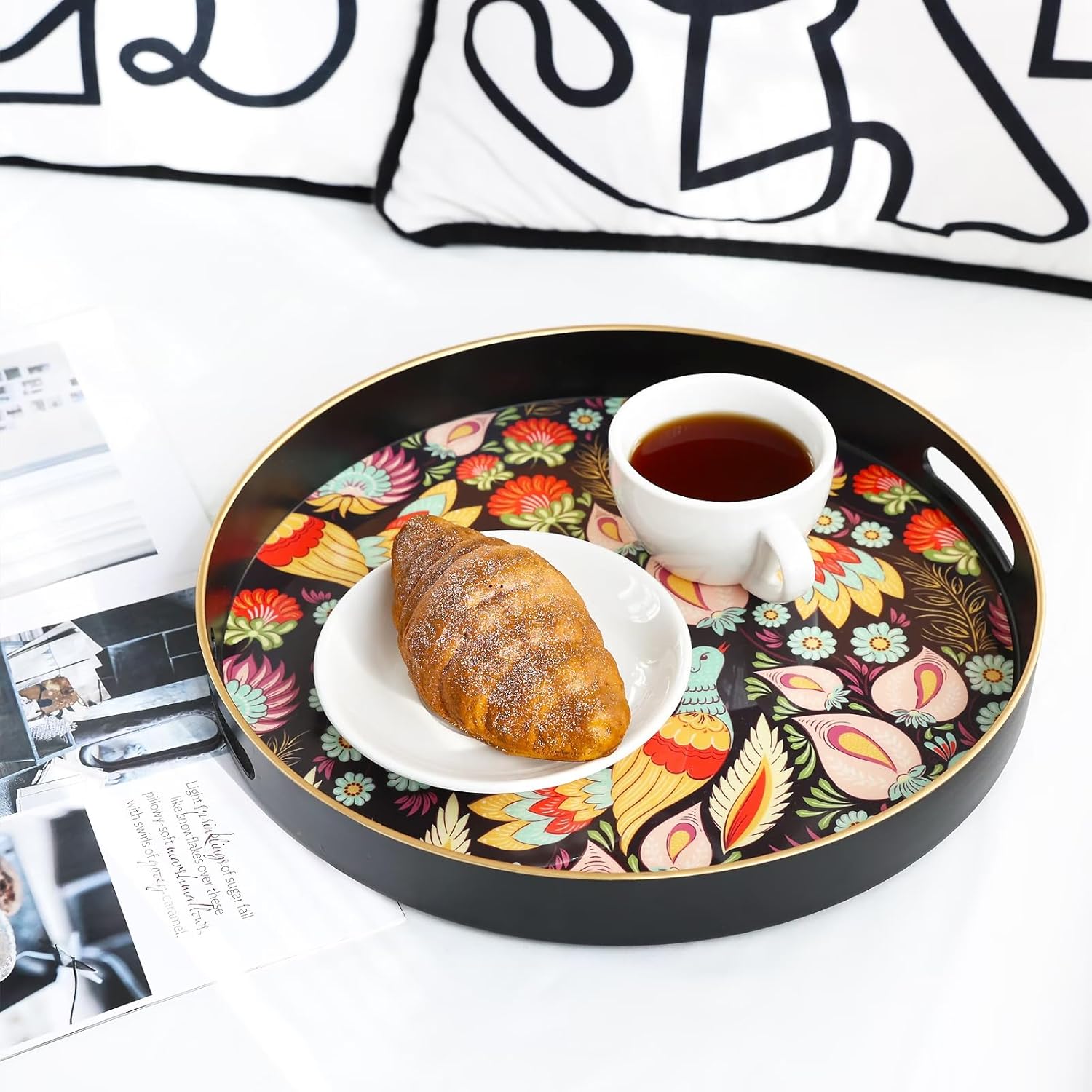 - Versatile & Stylish Design: Spsyrine serving tray with handles is perfect for any setting β from coffee tables to kitchen counters and ottomans. Use it for decoration, serving, or as a centerpiece