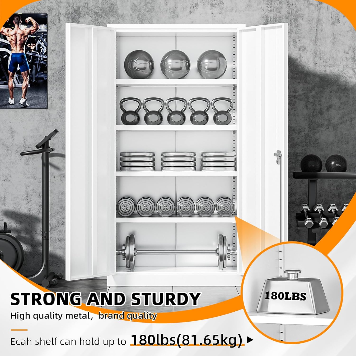 - 【High Security】: Tall steel storage cabinet with 2 door and 4 adjustable shelves to accommodate items of all sizes.The locking file cabinet with 2 Locking keys and 3-pointed locking system can highly secure your belongings.Whether you want to store office files, garage tools, or other large and heavy items, it's no problem.