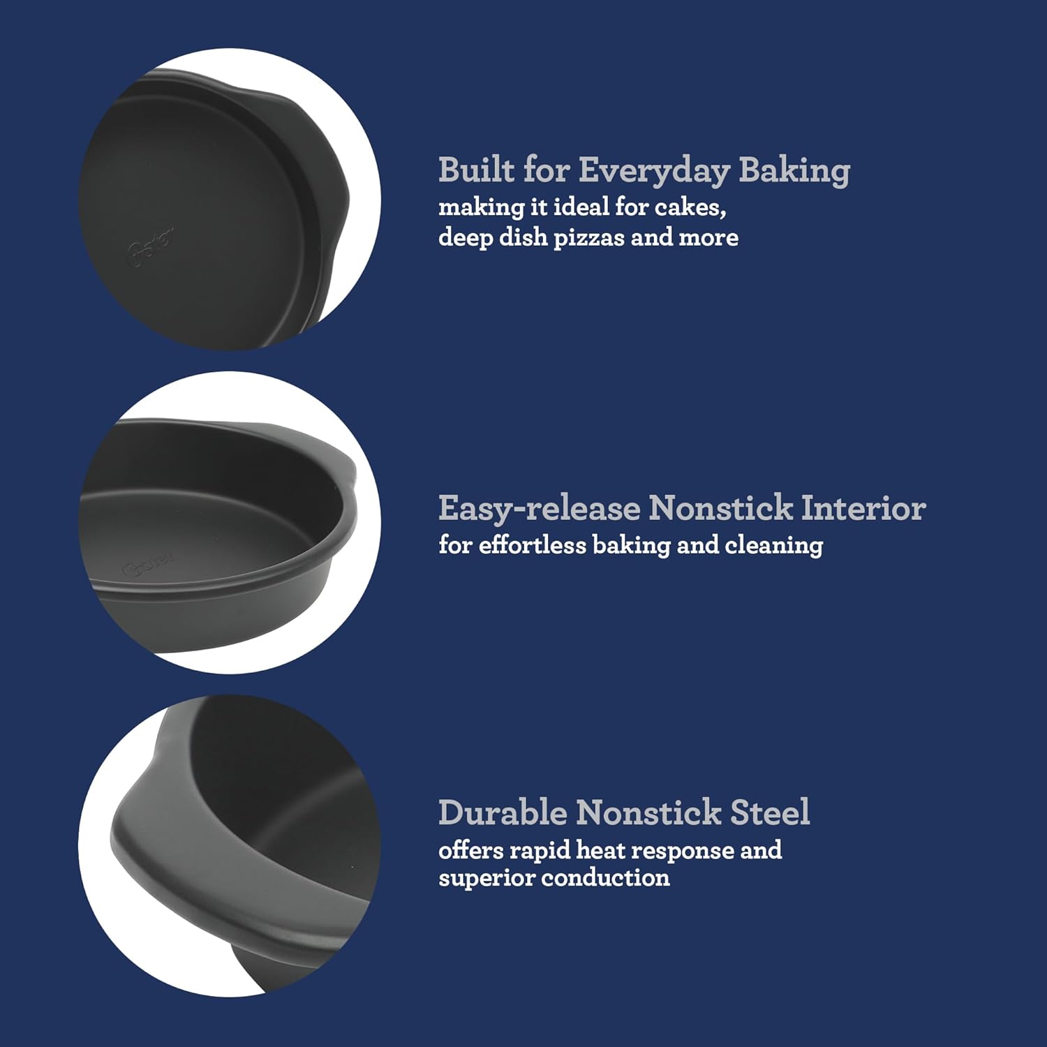 - A BOX CONTAINS: One 9-inch round cake pan from the Oster Platinum Collection
