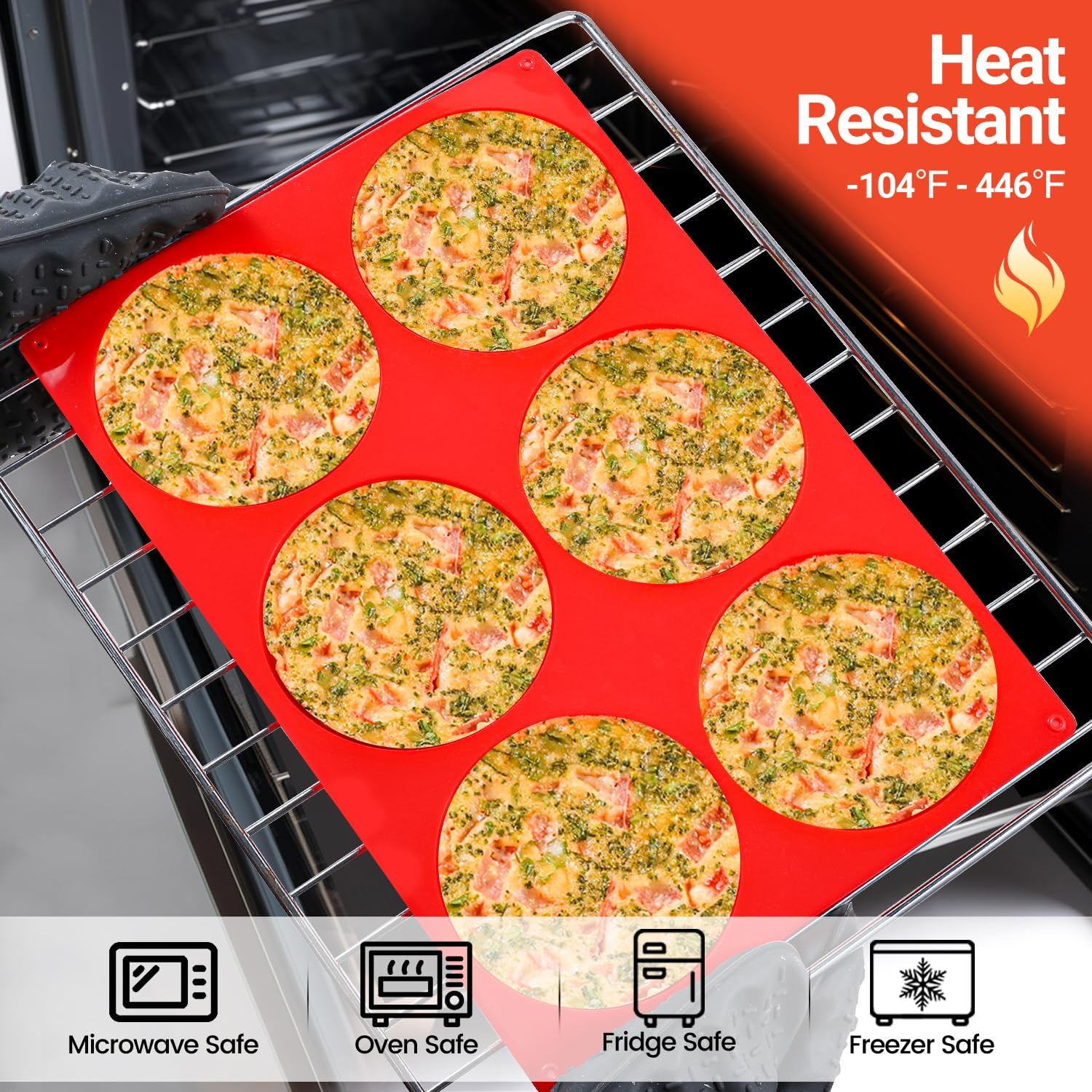 Jumbo Muffin Top Pan, 4 Inch Extra Large Egg Baking Pan for Oven Silicone Molds for Breakfast Sandwiches, English muffins, Whoopie Pies, Corn Bread, Egg bites, 2 Pack Red