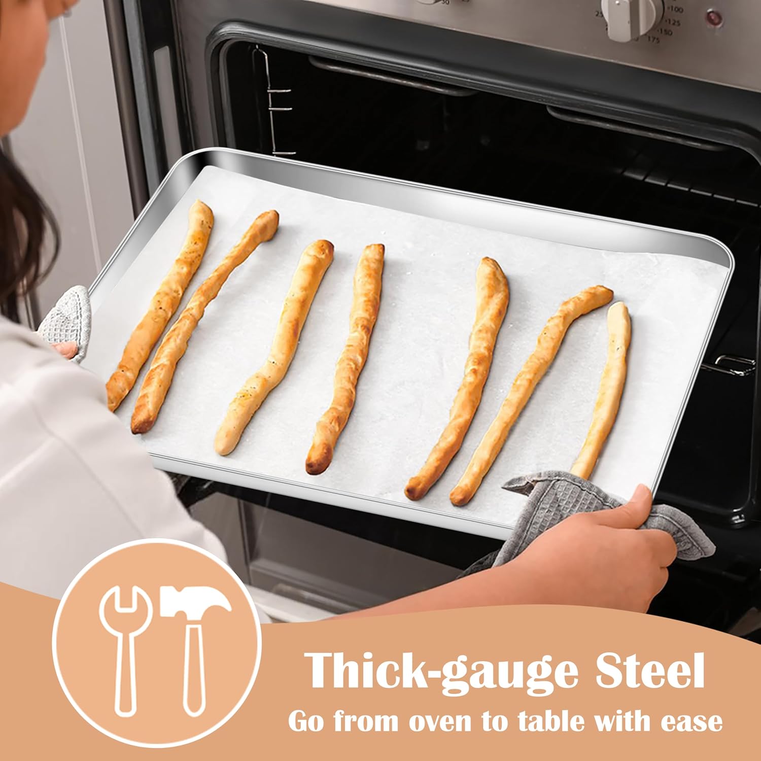 - 【BAKING EVENLY】 Pure stainless steel provides excellent heat conductivity for perfectly browned food, With flat bottom ensures even and uniform baking for good baking performance, Make it ideal for baking cookies/bacon/chicken or cooking large meals