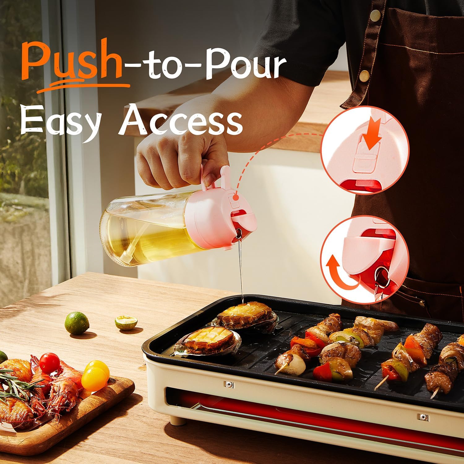 TrendPlain 16oz/470ml Glass Olive Oil Sprayer for Cooking - 2 in 1 Olive Oil Dispenser for Kitchen Gadgets, Air Fryer, Salad, and BBQ - Peach