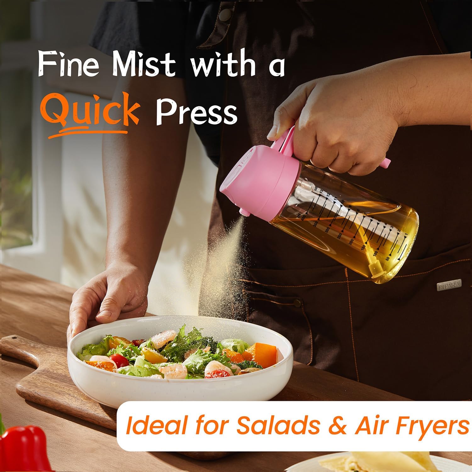 TrendPlain 16oz/470ml Glass Olive Oil Sprayer for Cooking - 2 in 1 Olive Oil Dispenser for Kitchen Gadgets, Air Fryer, Salad, and BBQ - Bubblegum