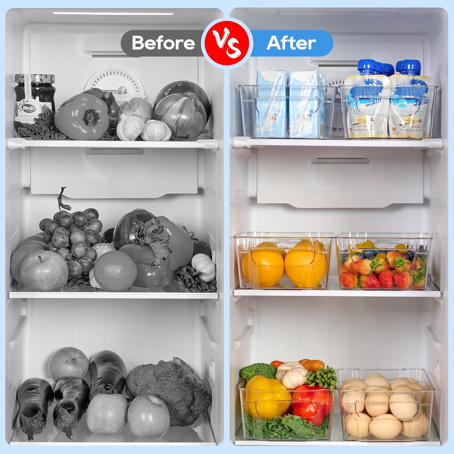 - Built-In Handles: These clear storage bins feature sturdy, built-in handles on both sides, making it easy to pull, lift, and slide them in and out of your fridge or pantry. The secure grip ensures effortless handling