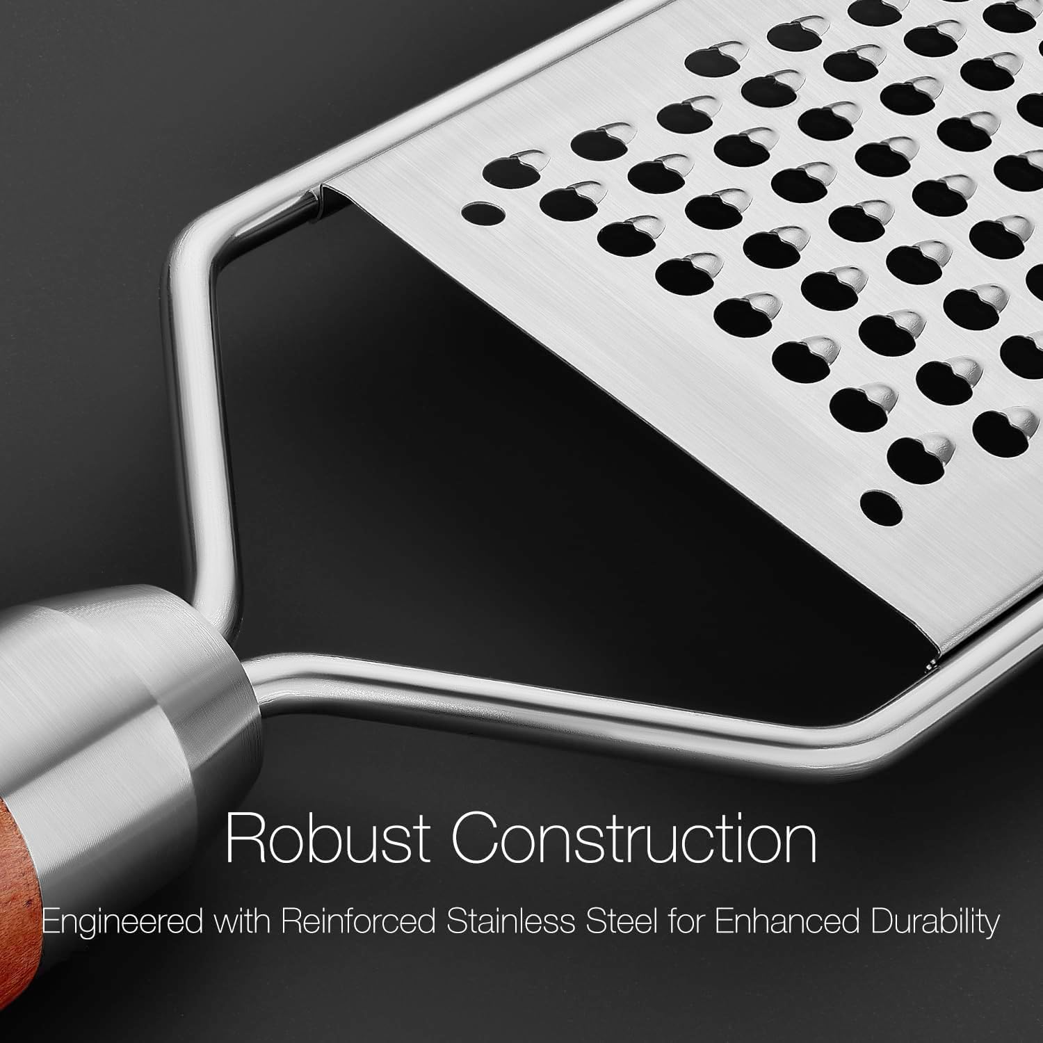 - Comfortable Solid Wood Handle: The elegant solid wood handle provides a comfortable and secure grip, allowing you to zest and grate with precision and control without slipping.