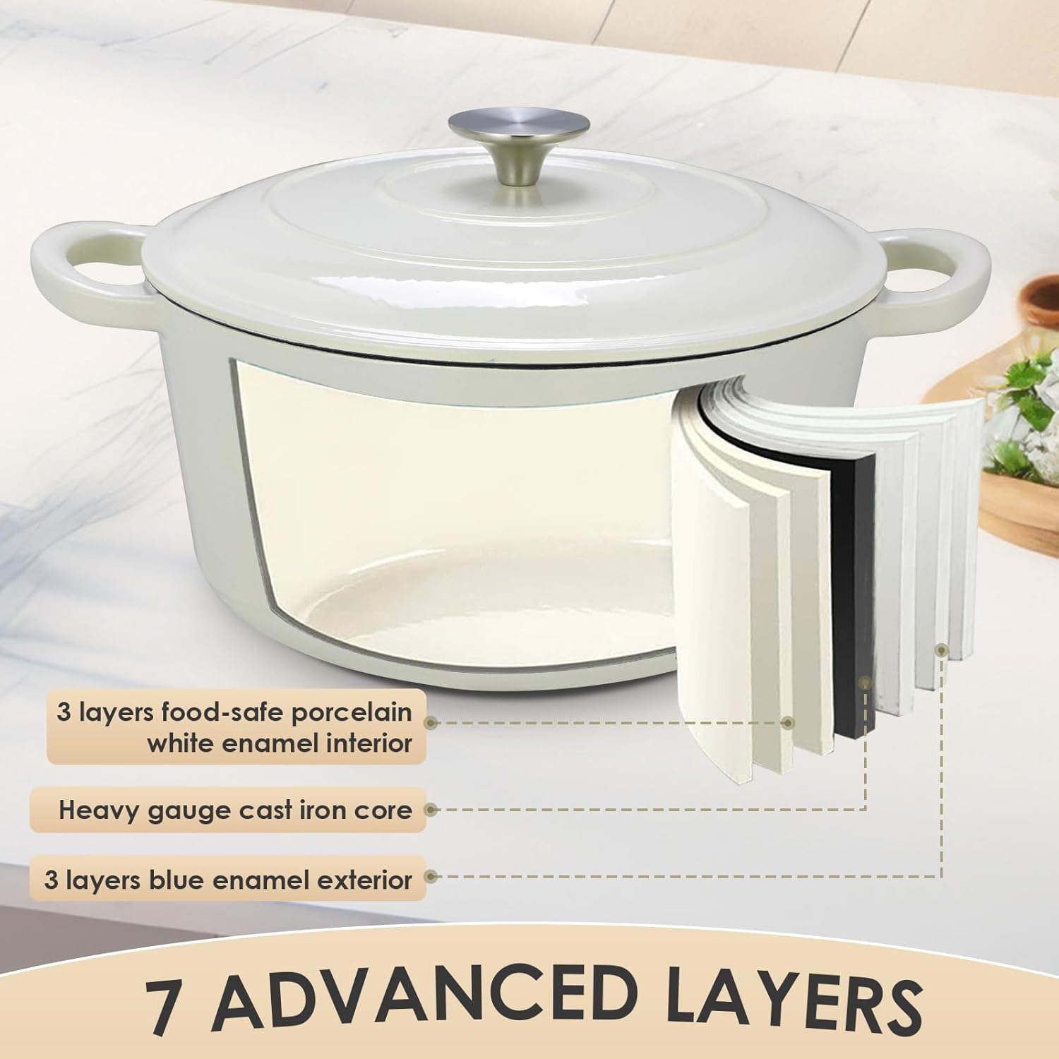 LIFERUN 6 Qt Enameled Cast Iron Dutch Oven Pot with Lid,Oven Safe up to 500° F, Non-Stick Dutch Oven with Dual Handles for Bread Baking, Fry Foods, Braising, Stews, Roasting (White)