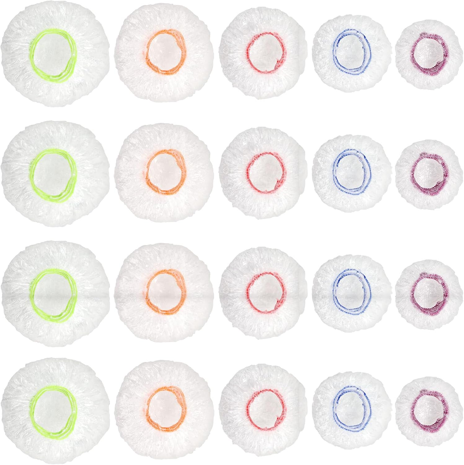 - Various colors and sizes: 200Pcs bowl covers in 5 different colors(Blue/Red/Purple/Green/Orange) and 5 different sizes(4/6/8/10/12 inches)