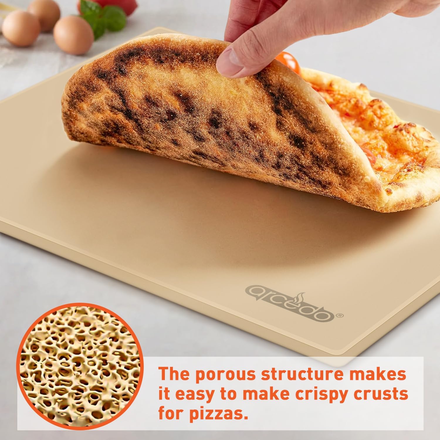 - ARCEDO PIZZA STONE - This 20" x 13.5" pizza stone is a superior alternative to traditional pizza pan, offering excellent heat retention and distribution, and high durability. A must-have tool for any home cook or baker seeking professional-quality results and versatility in their kitchen.