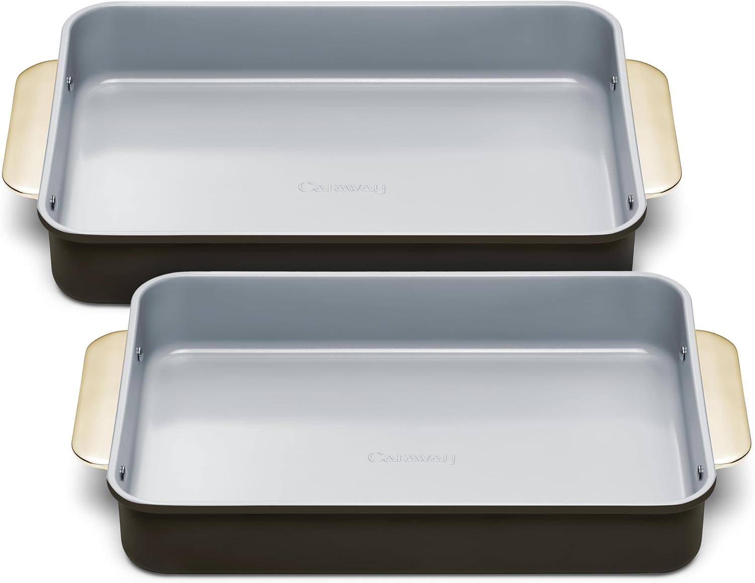 Caraway Non-Stick Ceramic 9”x13” Rectangle Pan Duo - Naturally Slick Ceramic Coating - Non-Toxic, PTFE & PFOA Free - Perfect for Brownies, Lasagnas, and More - Black