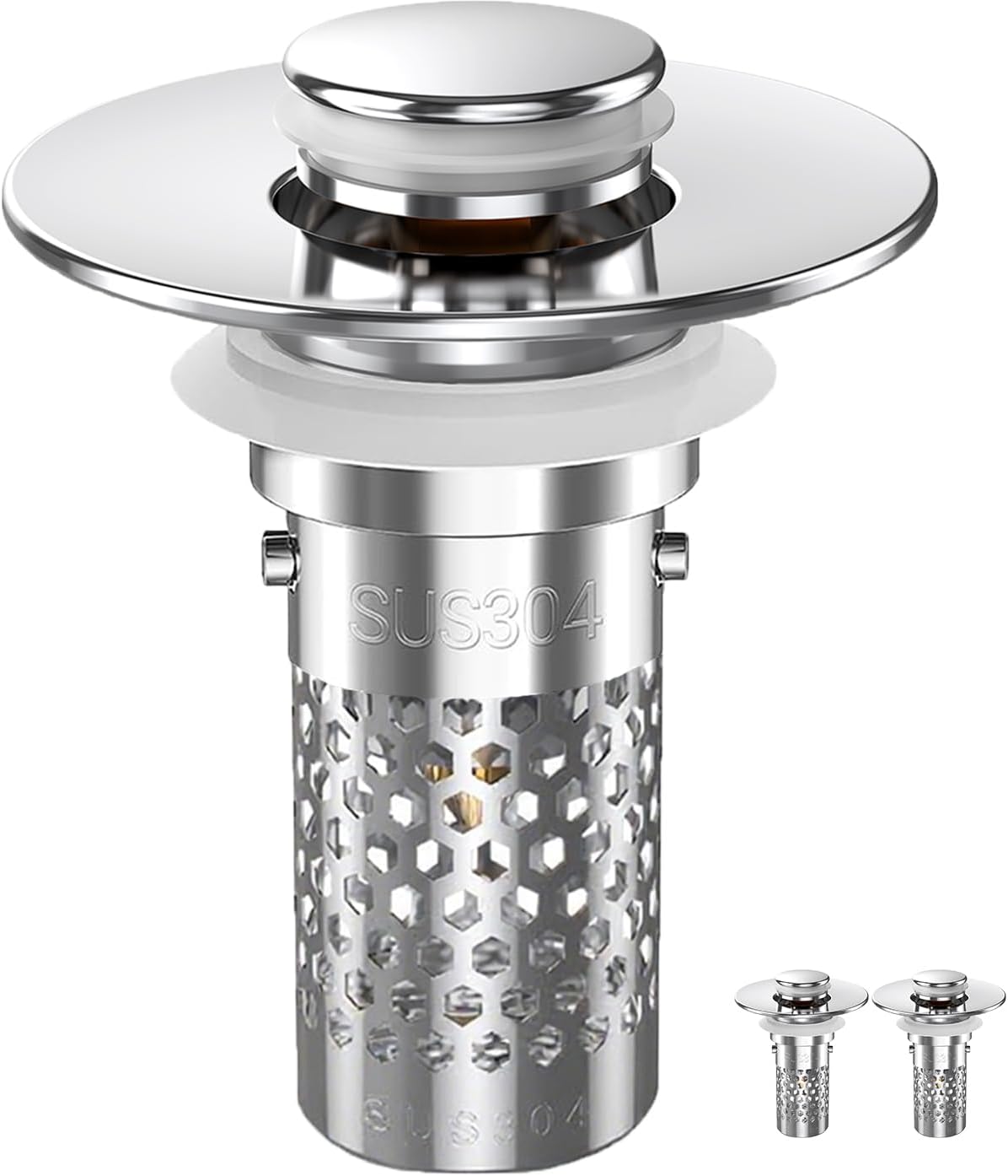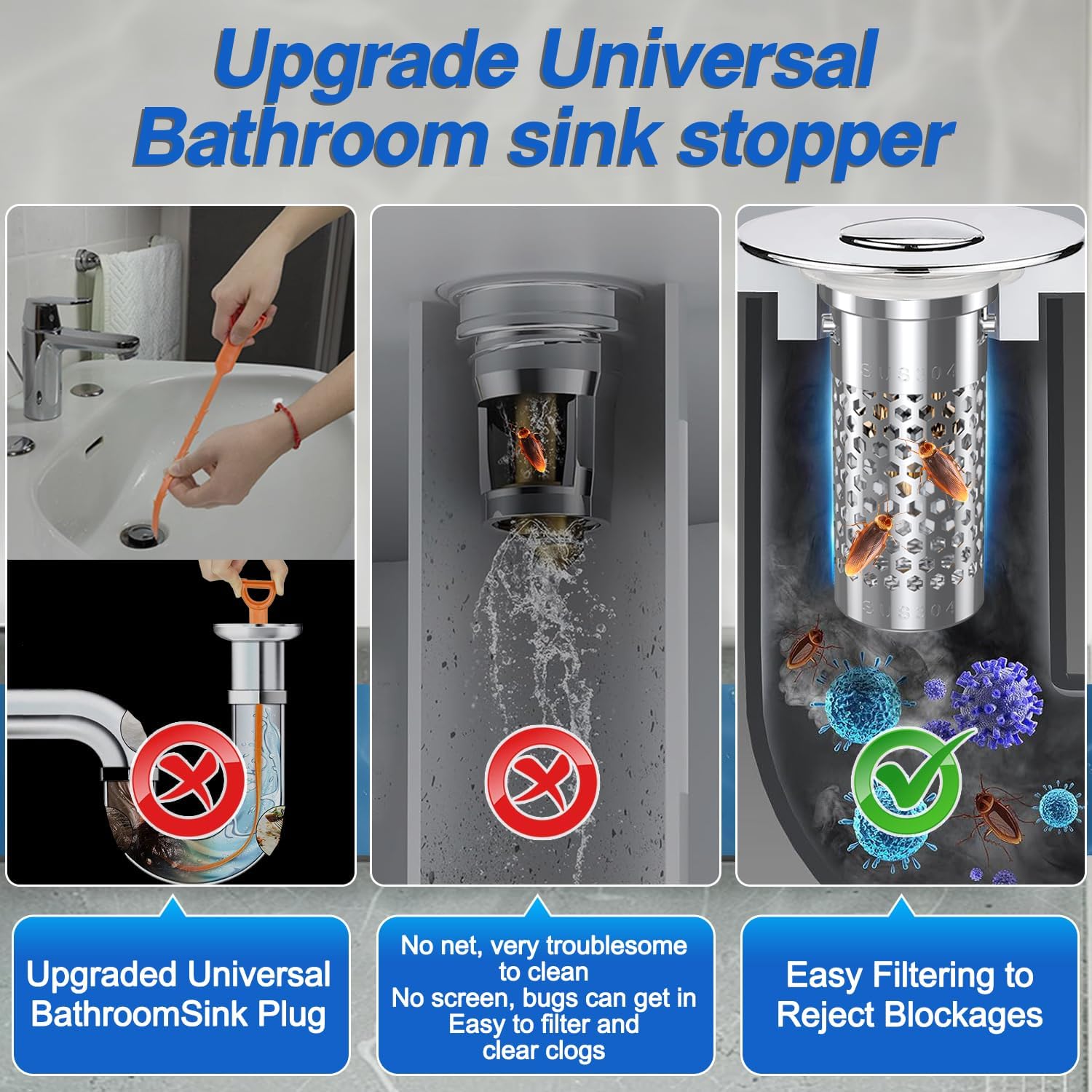 - 🔥【Pop-up Design】This bathroom sink drain strainer is engineered to catch hair and prevent clogs in your bathroom sink. The sink stopper features an easy-to-use pop-up mechanism that makes it easy and convenient to open and close the drain. With a diameter range of 1.1-1.45 inches, it fits most American bathroom sink stopper and is an effective drain strainer. The brass core construction ensures durability and long-lasting performance, making it a great choice for all bathroom sinks.