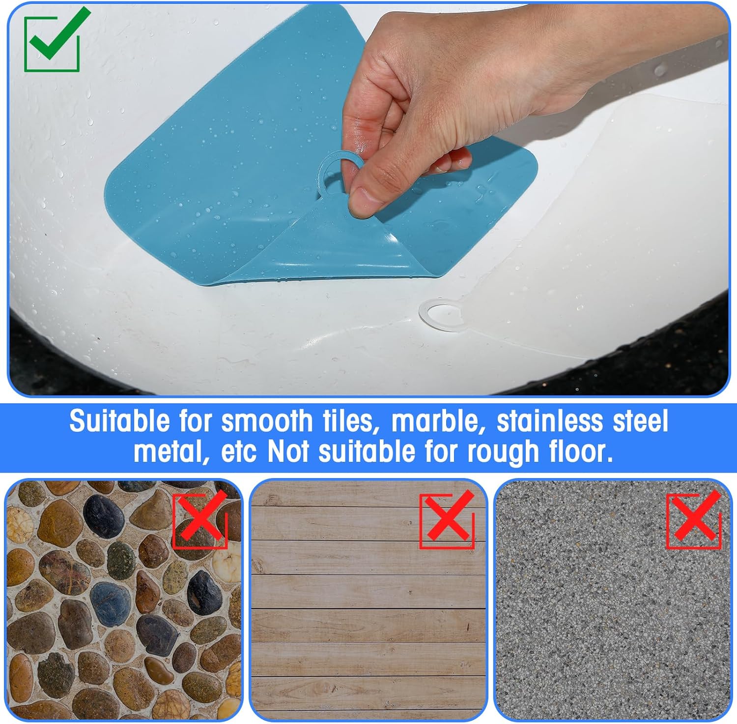 - Safe and Reliable: the drain cover is mainly made of quality silicone material, safe, reliable and strong, which can serve you for a long time; With smooth surface and neat edges, the mat can be easily adsorbed on the floor, and will not float easily