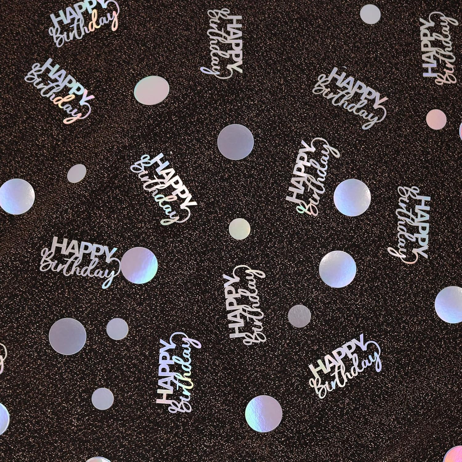 - Happy birthday party table decorations.The shimmering silver foil paper birthday confetti featured with mix designs(round circles/happy birthday letter),perfect for the birthday party table decor.
