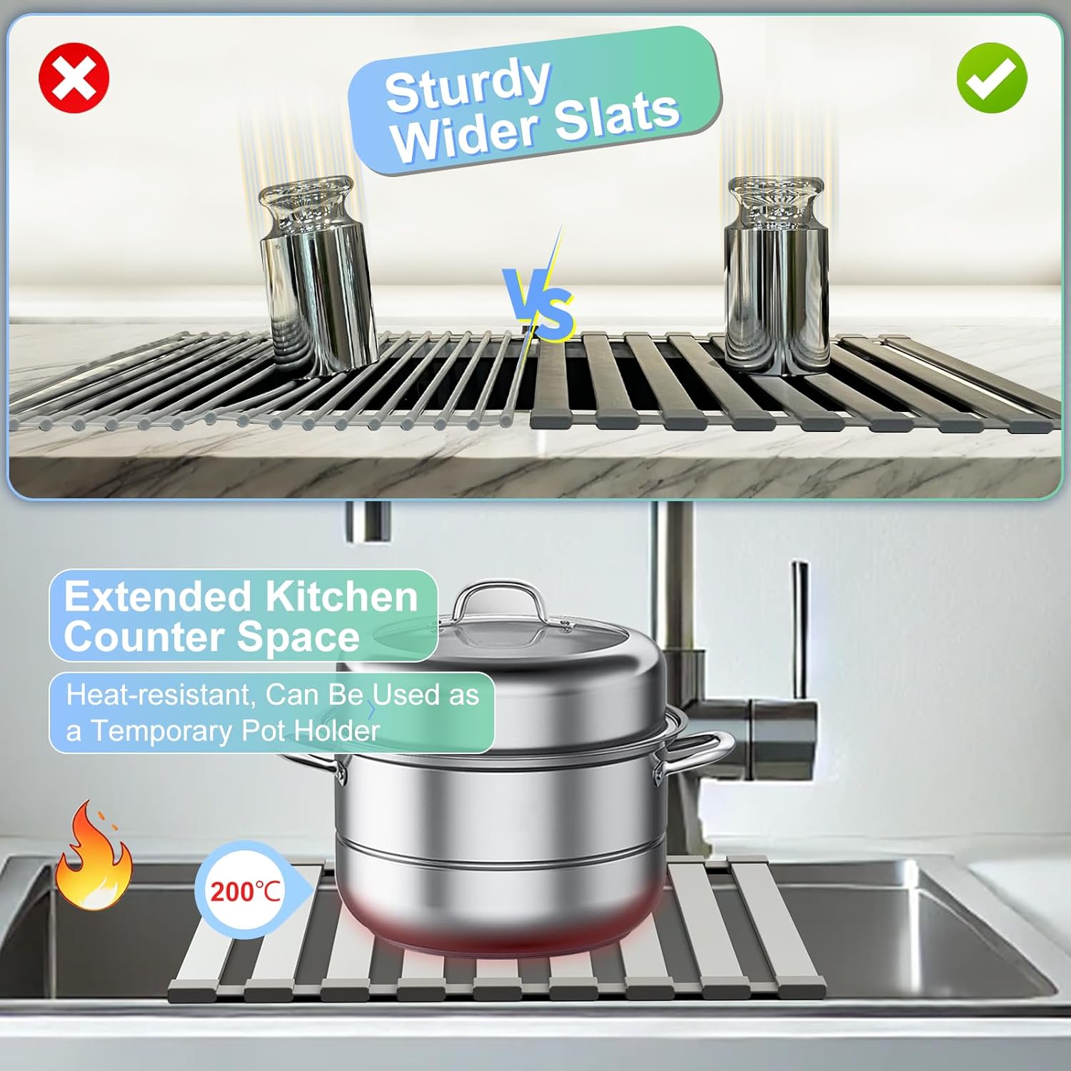 - 【Maximizes Space】Expands your workspace in a narrow kitchen. Place it over the sink to free up valuable counter space.