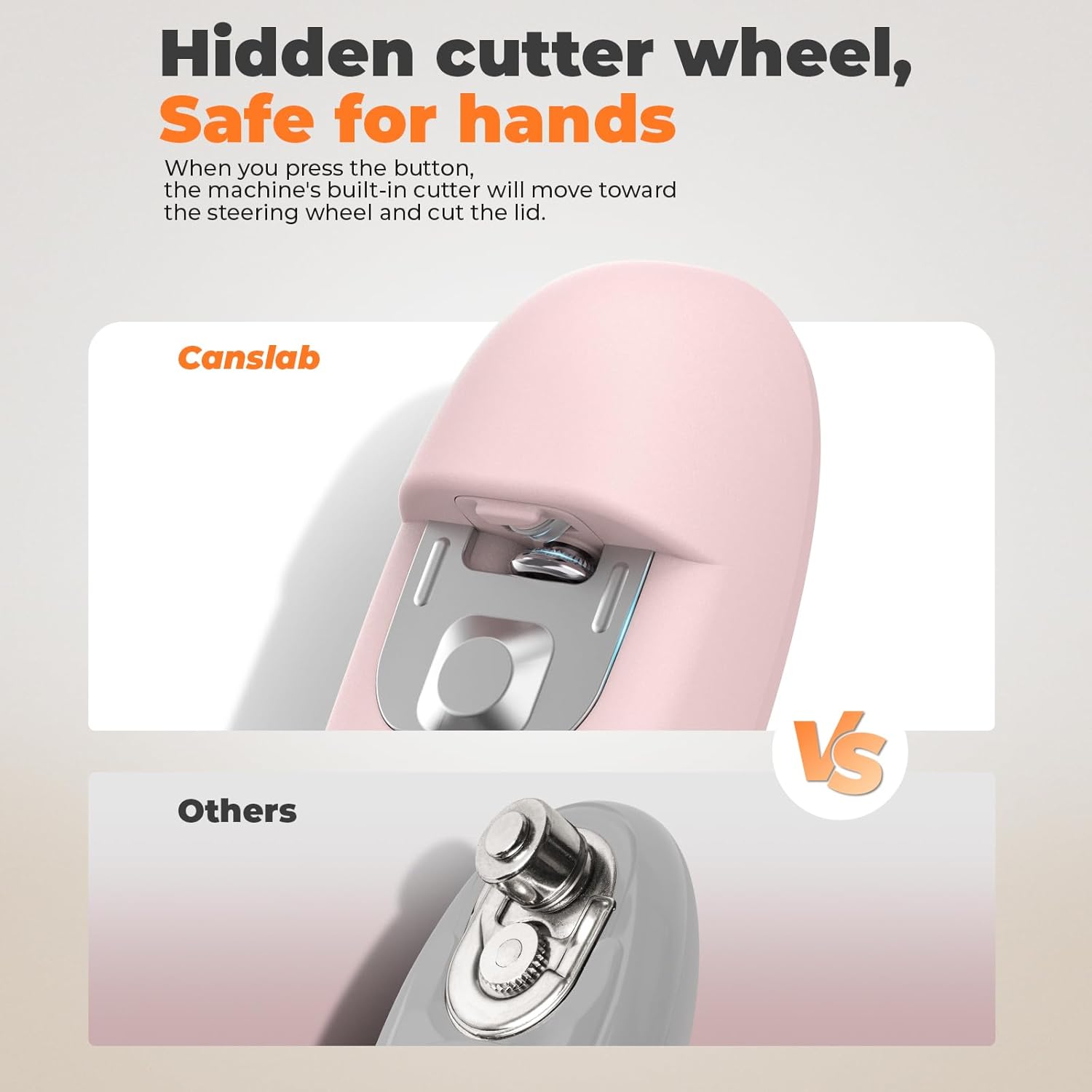 - 【Suitable for Small and Lager Cans 】- Canslab Can Opener Electric is a portable must-have kitchen gadgets. It fits practically any sizes can (not for rimless soda cans) , and gives you the best hands-free experience when preparing food. Hands-free operation are particularly beneficial for the seniors with arthritis or anyone facing challenges gripping, one-handed and left handed folks, or anyone searching for a more quicker way to open cans.