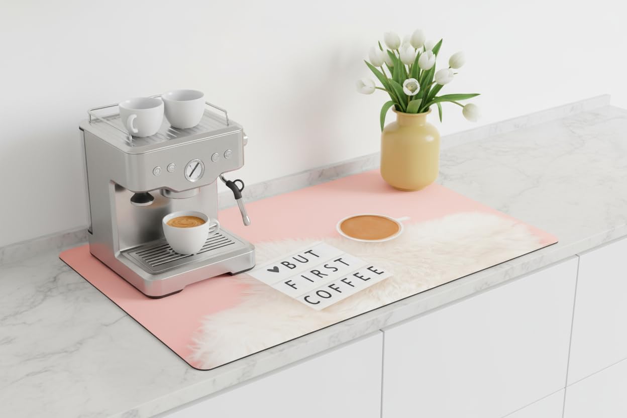 - ANTI-SLIP TECHNOLOGY: Our coffee mat boasts anti-slip technology, keeping it securely in place on your coffee station. No more slipping and sliding as you dry your dishes. Enjoy peace of mind knowing your kitchen essentials are always stable and ready for use.