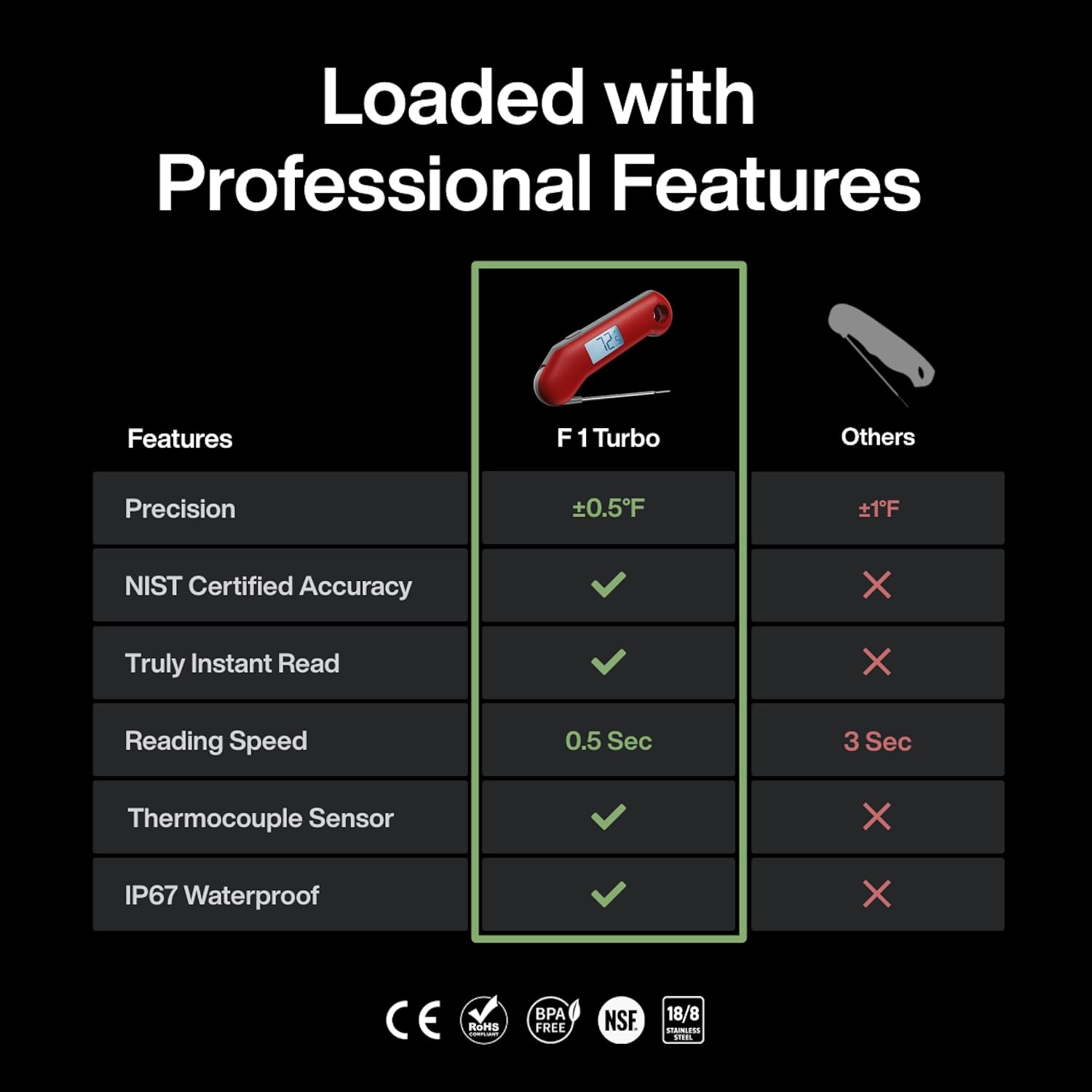 - NIST Certified Accuracy: Officially certified by NIST (National Institute of Standards and Technology), ThermoMaven digital meat thermometer always provides ±0.5°F (±0.3°C) accuracy, ensuring you get precise temperature readings and cook meats to the desired level of doneness.