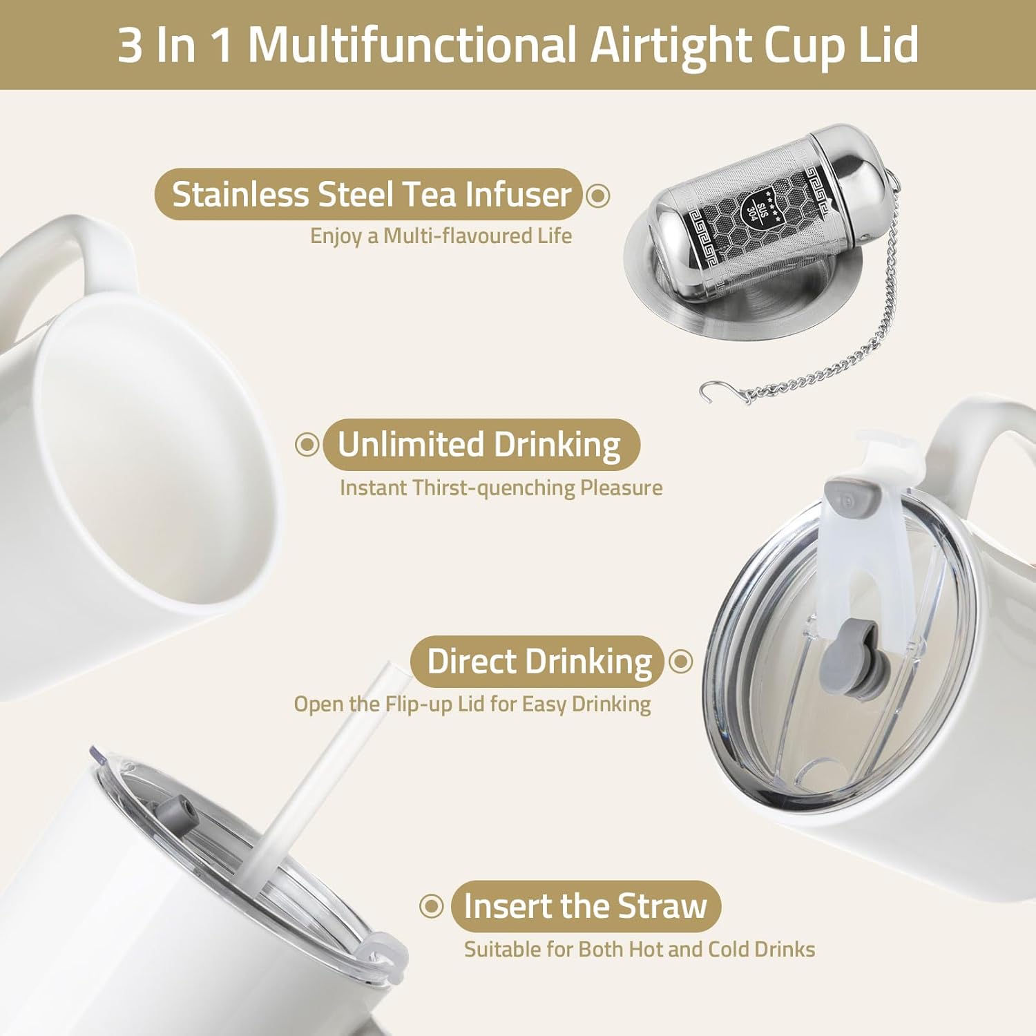 - More Than Just Coffee: With a 304 stainless steel tea infuser, the tea cup is designed for brewing loose leaf tea. The stainless steel material is durable and rust-resistant, ensuring a clean and flavorful tea-drinking experience. This feature makes the travel coffee mug perfect for tea lovers who prefer fresh, quality tea on the go.