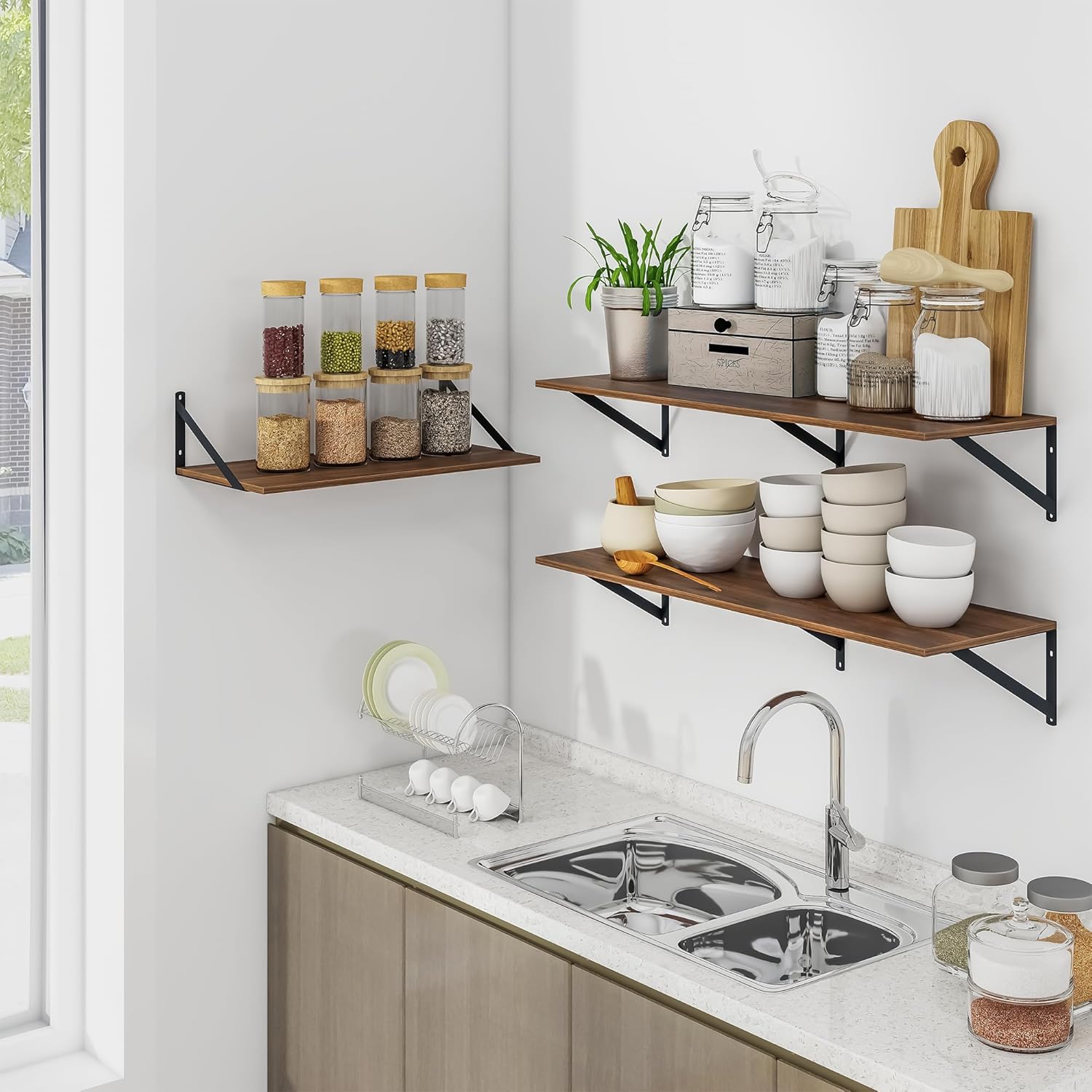 - [Large Capacity Floating Shelves] - Our wall shelves are 48" long x 12" deep, providing ample storage or display space for your kitchen, living room, bedroom, bathroom, laundry room, and more. With such a large space, you can place many items like books, collectibles, plants, crafts, photos, laundry detergent, etc. Our shelf can even be used as a bookshelf or a nightstand. Let our shelves decorate every corner of your home!