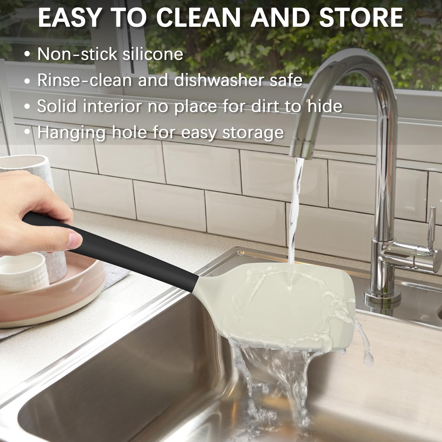 - [Easy to Clean & Store]: Non-stick silicone makes cleaning quick and effortless by hand or in the dishwasher; these turner spatulas include a hanging hole for convenient storage, helping save space in your kitchen