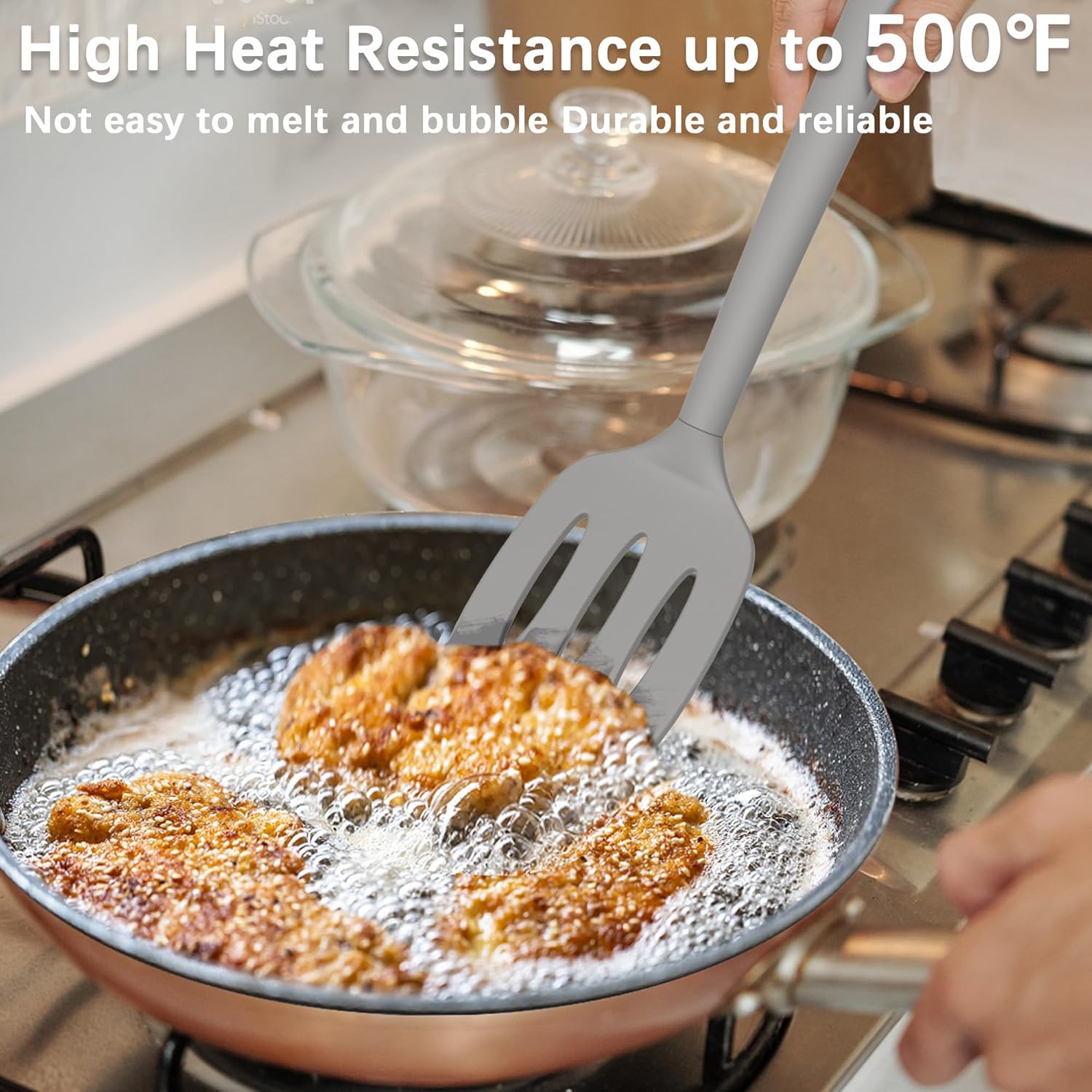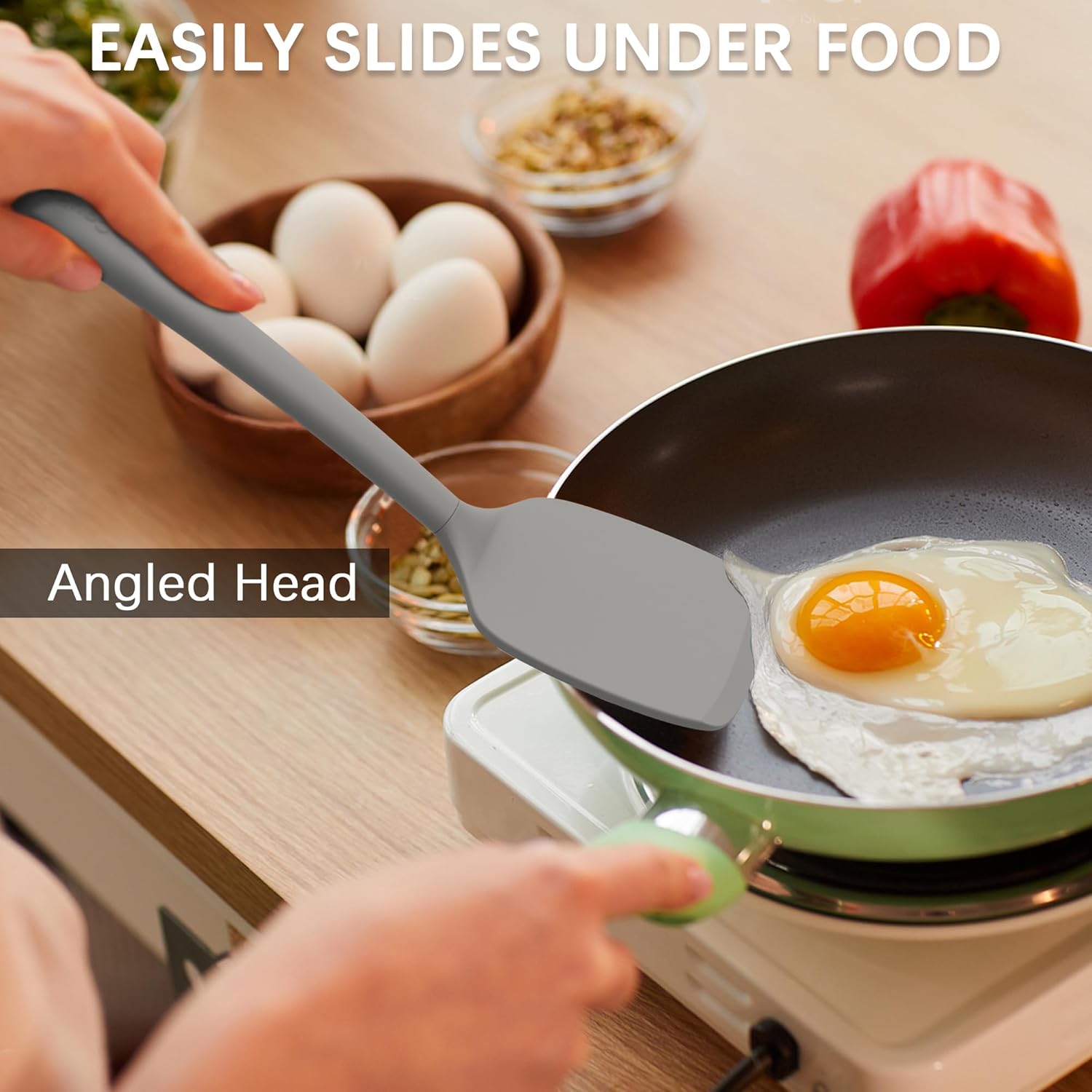 - [Sturdy Yet Flexible]: The kitchen spatula turner set features a reinforced nylon core, a silicone handle that makes the grip more comfortable, and the flexible head provides precise control, making flipping and stirring easier