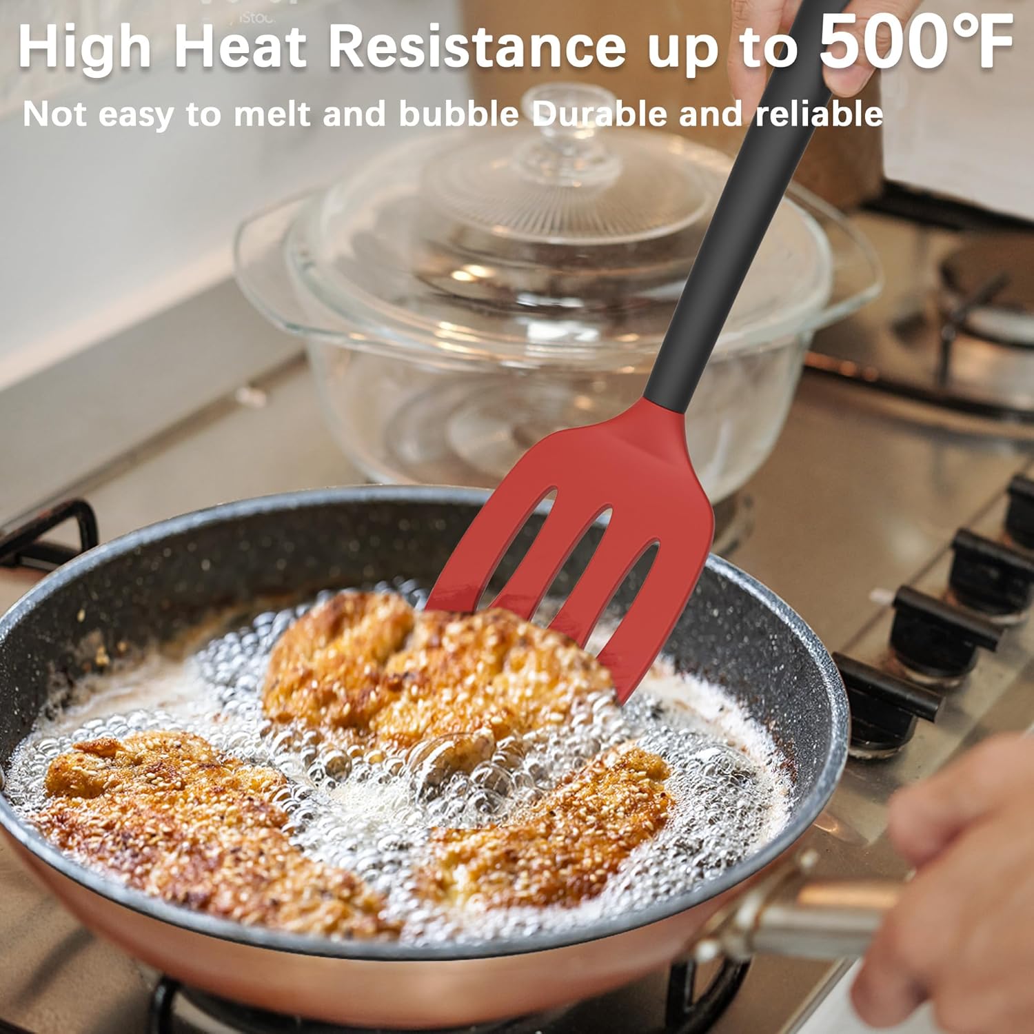 - [Sturdy Yet Flexible]: The kitchen spatula turner set features a reinforced nylon core, a silicone handle that makes the grip more comfortable, and the flexible head provides precise control, making flipping and stirring easier
