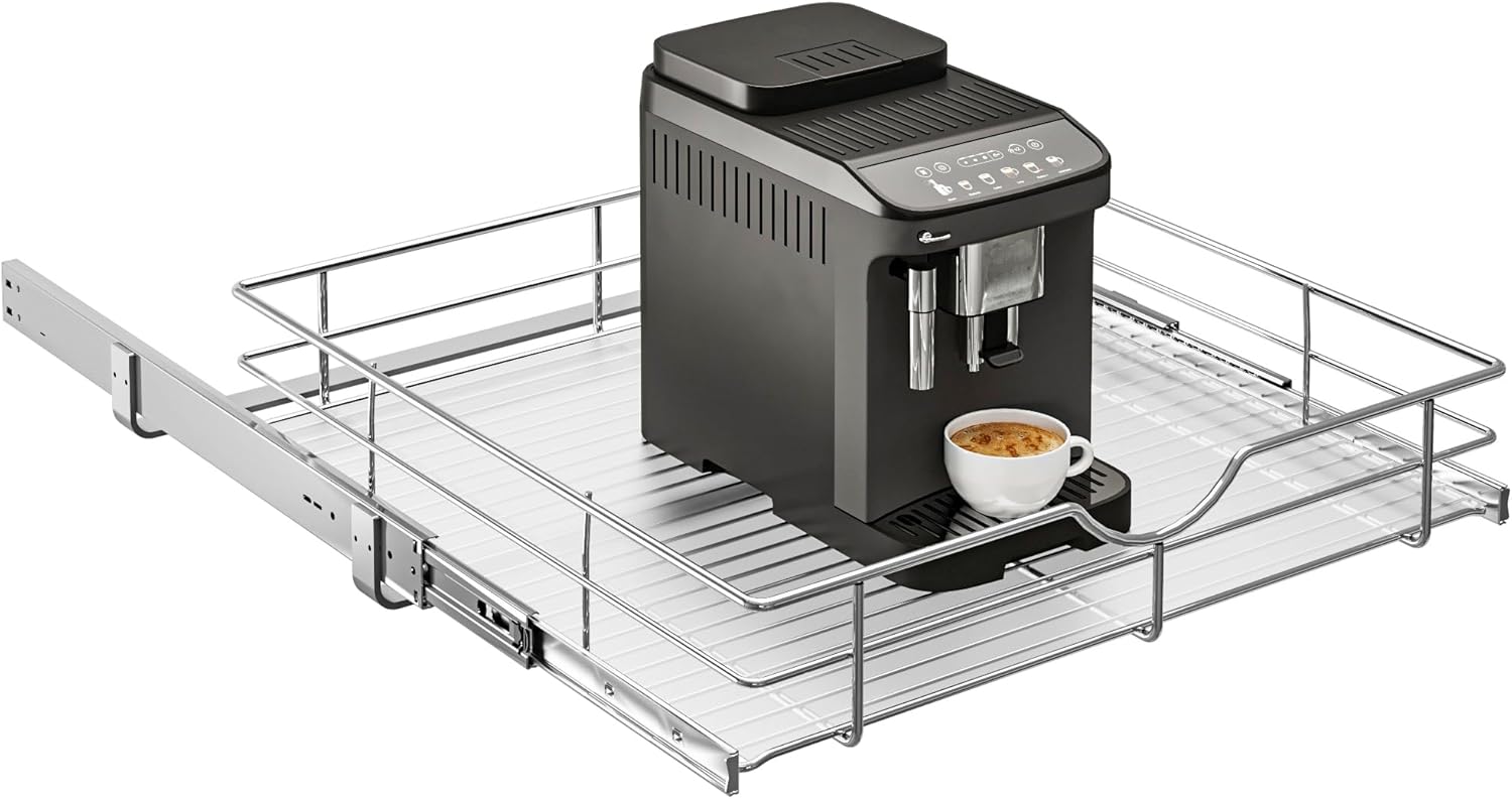 - 【Premium Material】This pull out cabinet shelf is made of high quality steel, heavy-duty and durable, load-bearing. The pull-out cabinet organizer offers a sturdy, noiseless, and smooth glide for easy access to kitchen essentials