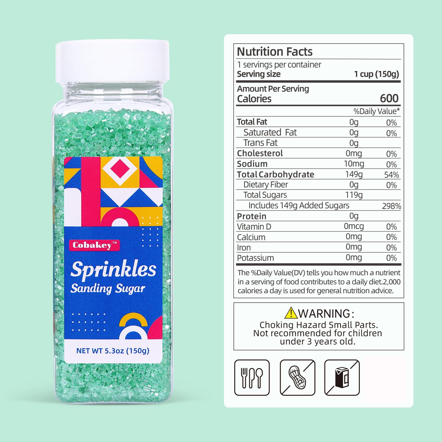 Green Sanding Sugar for Baking Easter Edible Sparkling Sugar Sprinkles Coarse Sugar Crystals for Cake Decoration Cookie Cupcake Topper Ice Cream Topping Supplies 150g/5.3oz