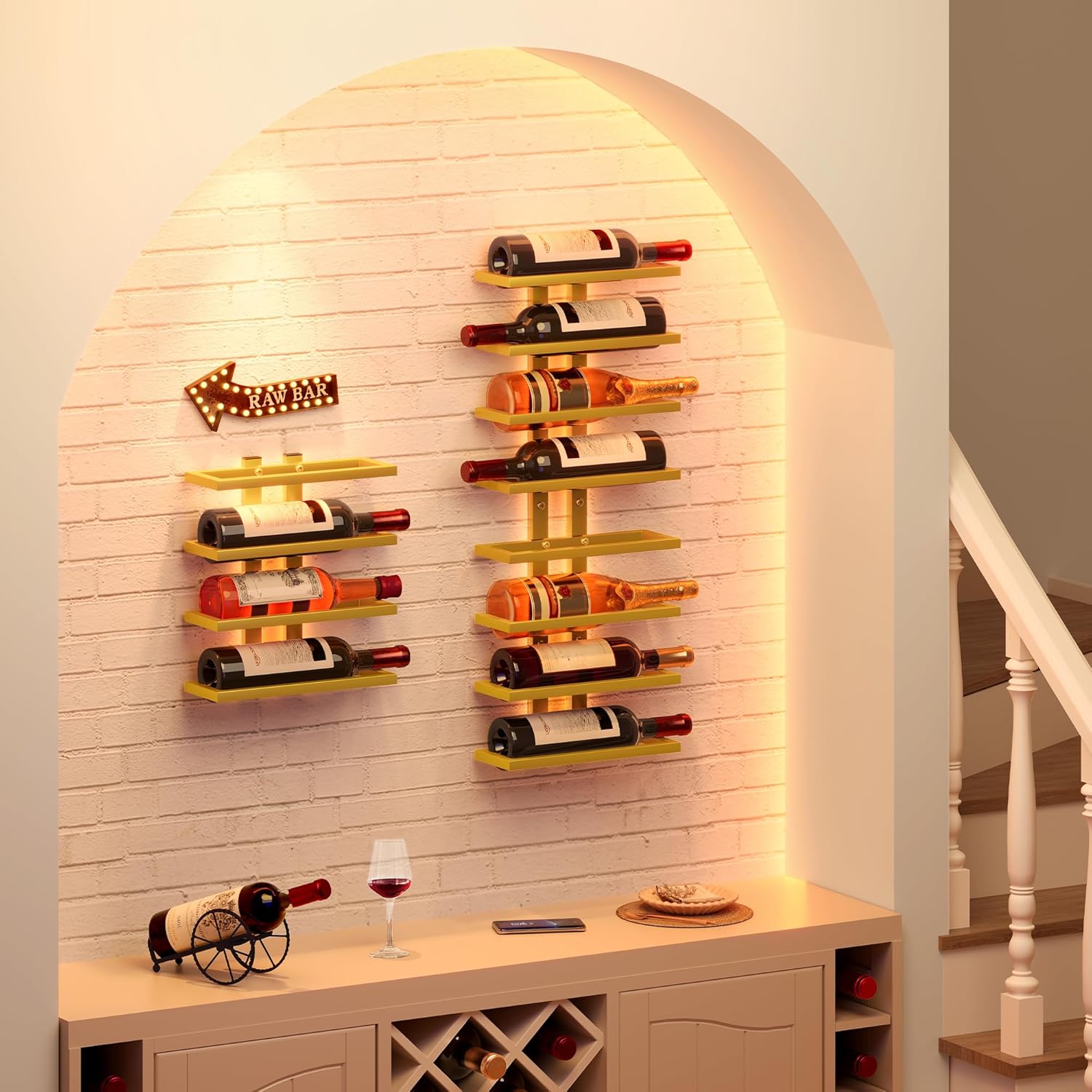 Hoctieon 8 Tier Wall Mount Wine Rack, Wall Racks for Wine Bottles Display and Storage, Hanging Bottle Organizer for Living Room, Dining Room, Wine Cellar, Bar, Gold