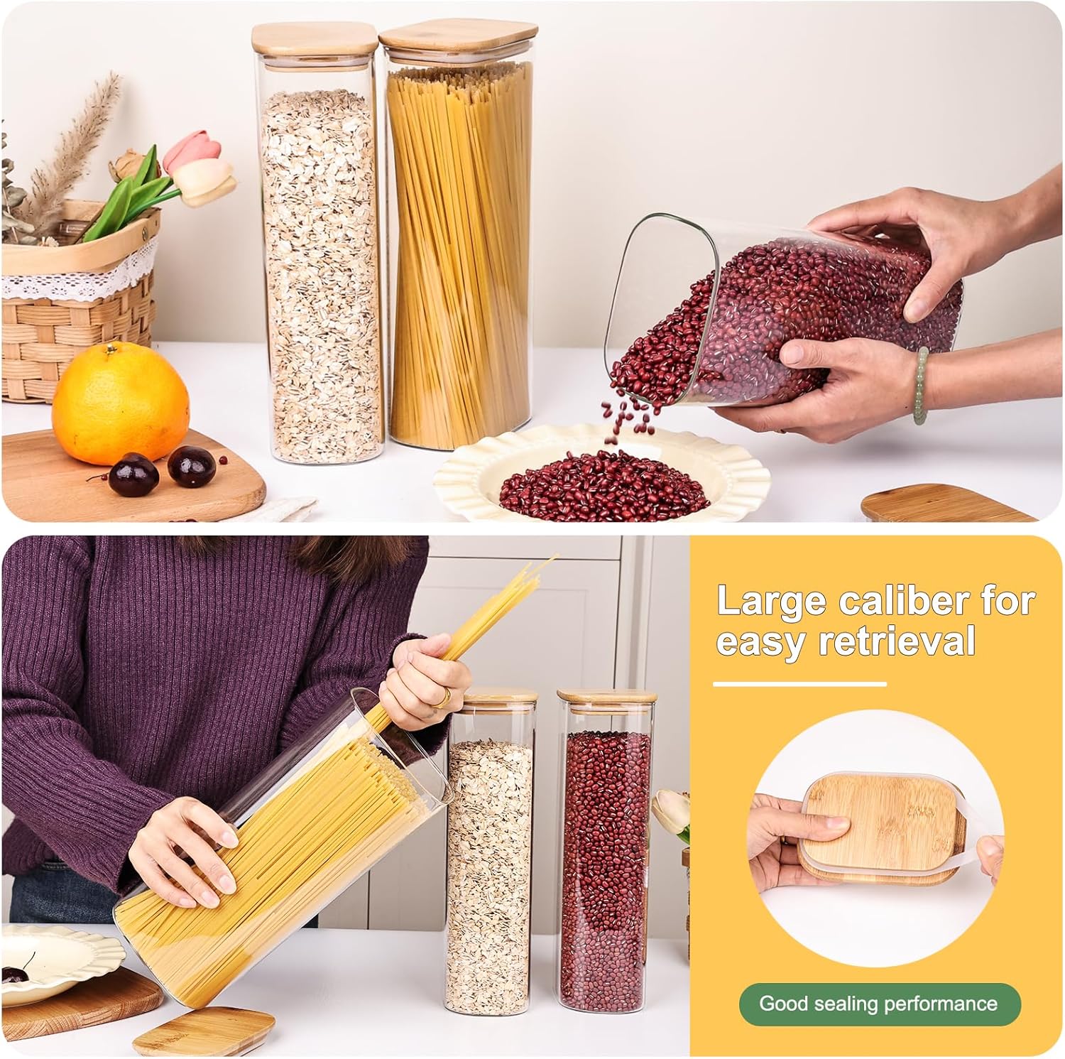 - Elegant and Practical Design: Elevate your kitchen organization with the sleek, square design of our Glass Food Storage Jars. These jars aren't just functional β they're also a stylish addition to your countertop or pantry. The clear glass allows you to easily identify the contents, making meal prep and cooking a breeze.