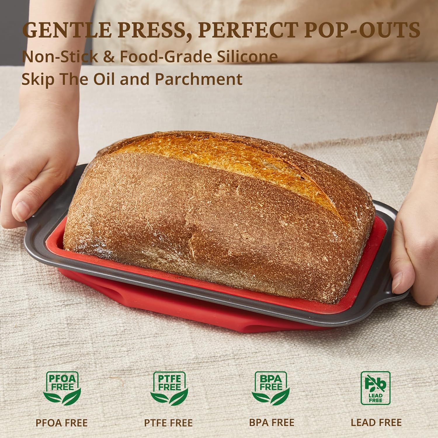 BRONYPRO 9x5 Inch Non-Stick Bread Loaf Pan,Non-Toxic Silicone Baking Mold For Homemade Bread,Heavy-Duty Steel Frame,Dishwasher Safe-Red