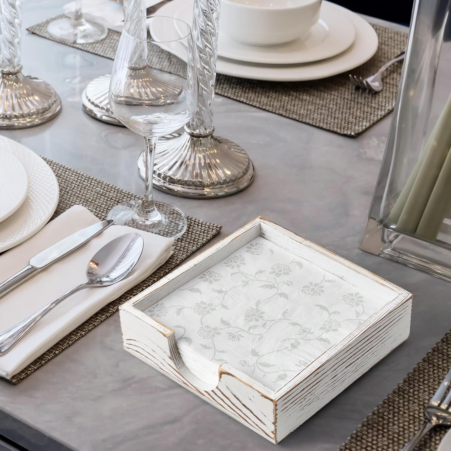- Perfect Size for Various Napkins: This wooden napkin holder measures 7.2" by 7.2" (Internal size: 6.5" by 6.5") and is the perfect size to hold luncheon, dinner, beverage or cocktail napkins, coasters, or memos, and also fits other standard guest towel/buffet napkins. PLEASE CONFIRM THE SIZE OF YOUR NAPKINS BEFORE ORDER.