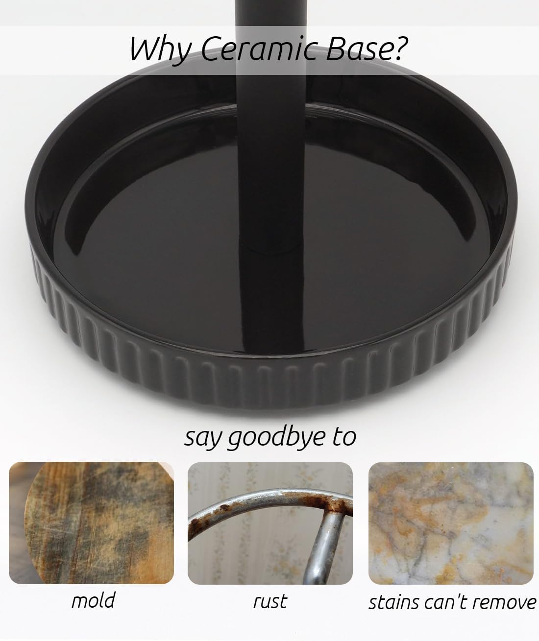 - EASY-TO-CLEAN CERAMIC BASE: Our paper towel holder features a ceramic base that resists stains, discoloration, and rust, ensuring long-lasting use. The high-rim design prevents water from the countertop from soaking into your paper towels.