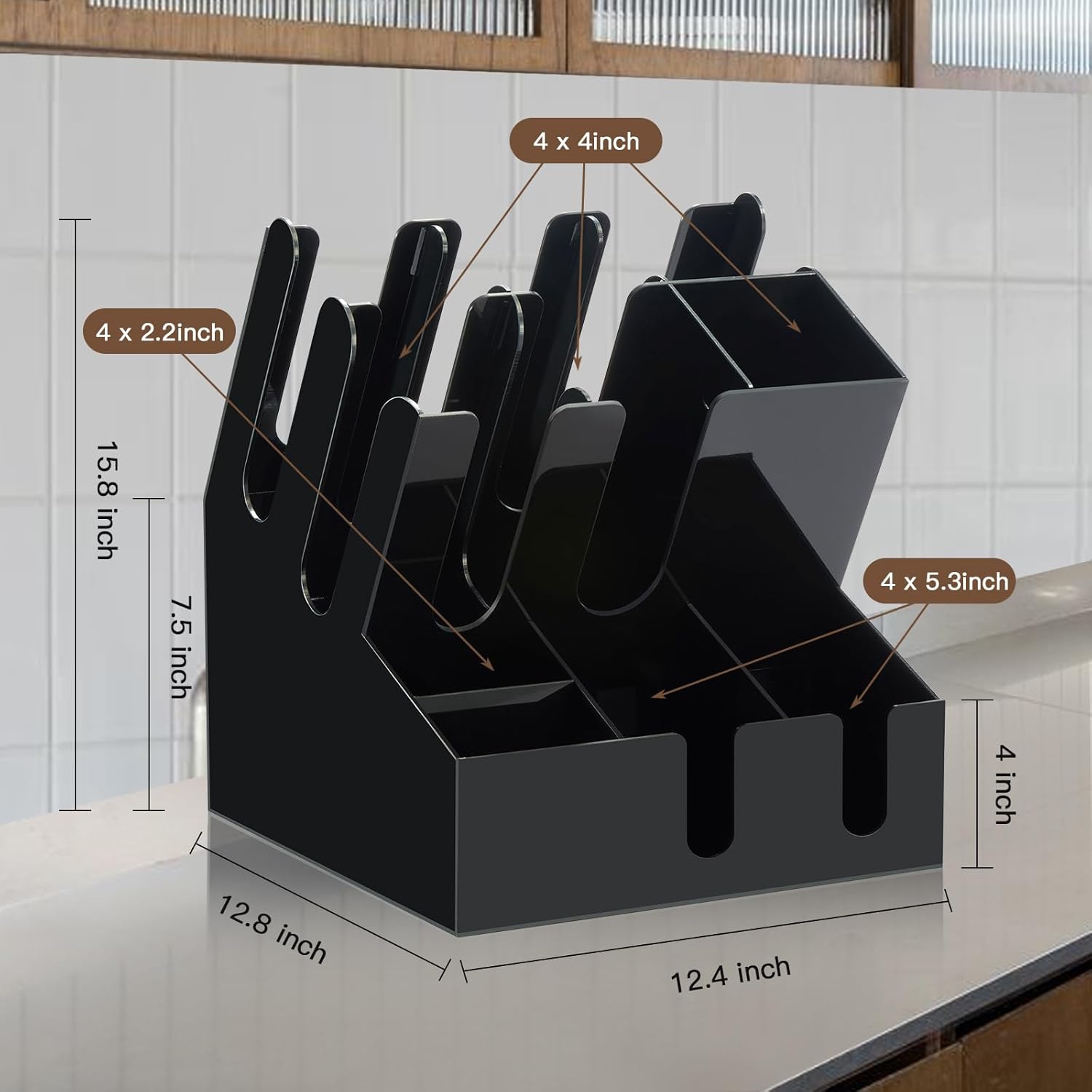 - Specifications: This countertop coffee condiment storage rack measures 12.4"x12.8"x15.8". This coffee shop condiment storage rack adopts a compact design and is suitable for surfaces such as desks, countertops, and tables. The lounge coffee condiment storage rack is a good helper to save space and reasonably store various small items