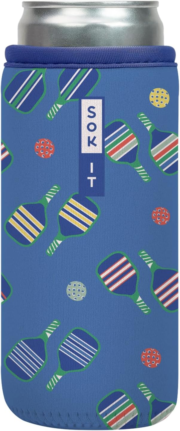 Sok It CanSok Sleeve for Beer & Soda Insulated Neoprene Cover (Pickleball, 12oz Slim Can Sleeve)