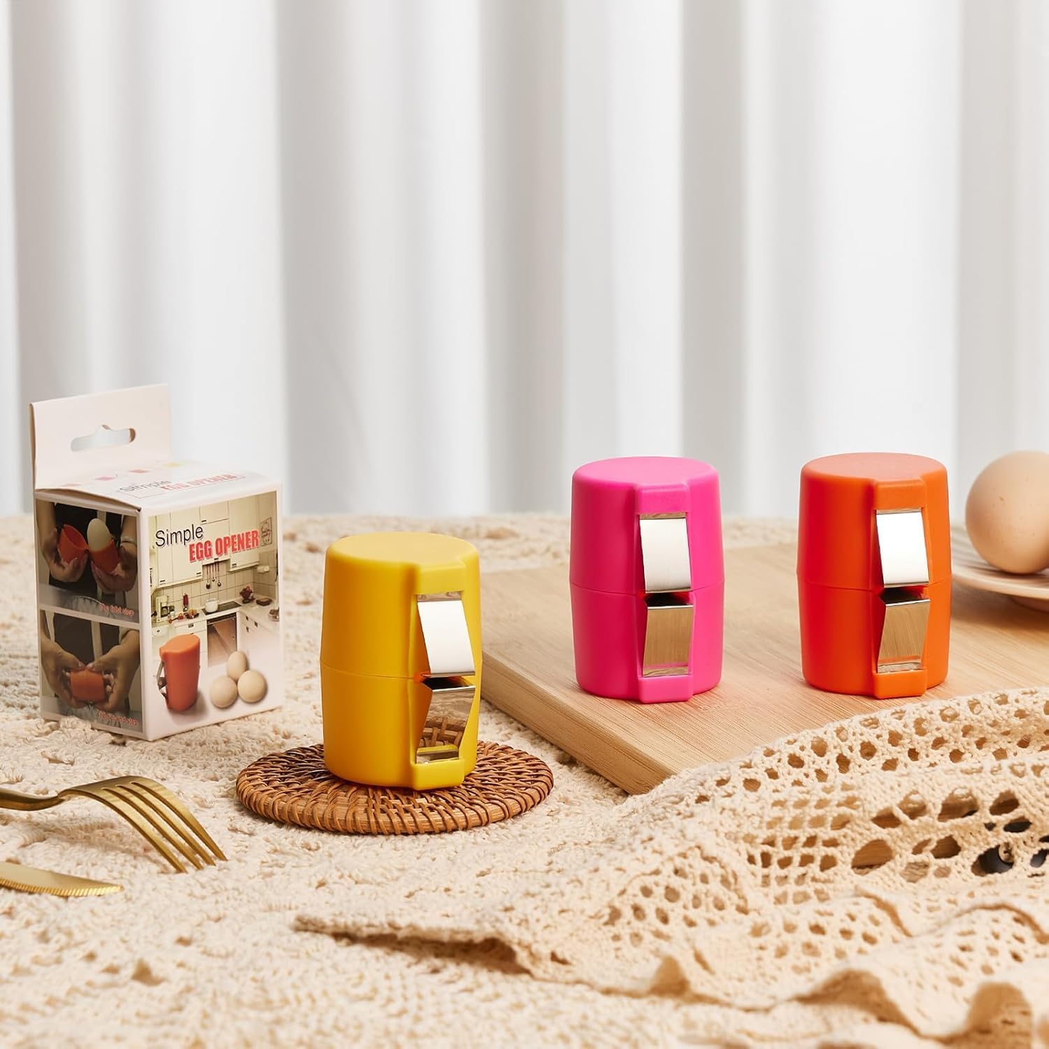 3PCS Egg Shell Opener, Egg Cracker Egg Peeler Egg Separator for Raw Eggs, Hard Boiled Egg Peeler Tool for Cutting Eggs, Eggs Breaker Kitchen Gadgets for Cooking Bakery (Orange&Pink&Yellow)