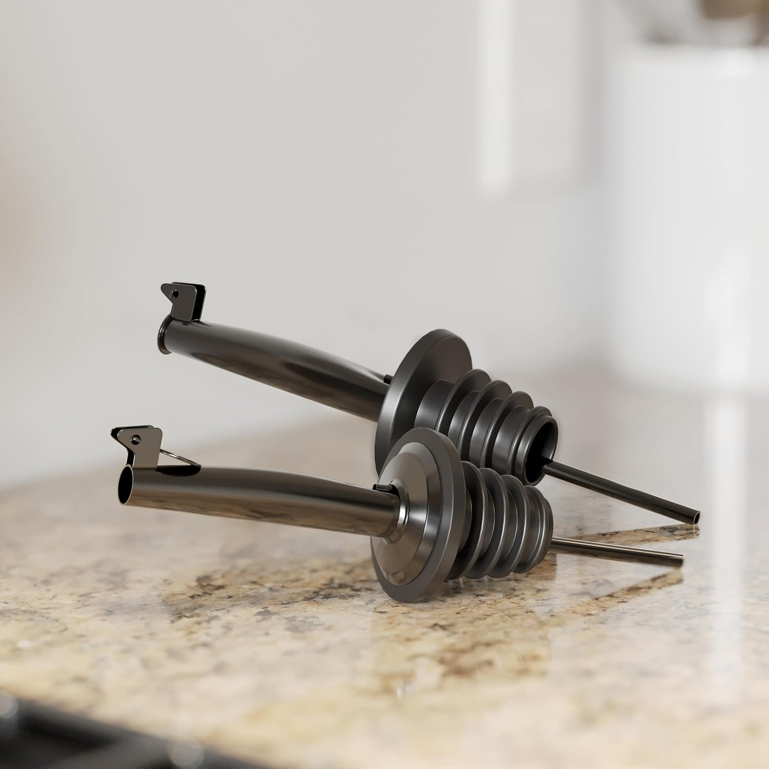 New England Stories Kitchen Cooking Oil Dispenser Set, Olive Oil and Vinegar Bottles, Soy Sauce Dispenser - 4 Pieces, Black, Durable & Stylish Design