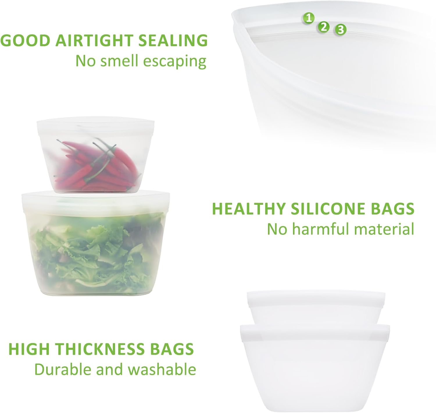 - ππππ ππ¨ ππππ, ππππ π πππ π ππππ: Reusable silicone food storage containers featured with triple zipper closures locks avoid leaking,can shake upside down securely, easier to open and close for anyone. Whether it's in a hurry or for a meal prep, your fruit, sandwich and snack stay perfectly contained, their flavors locked in and your fridge, countertops dry