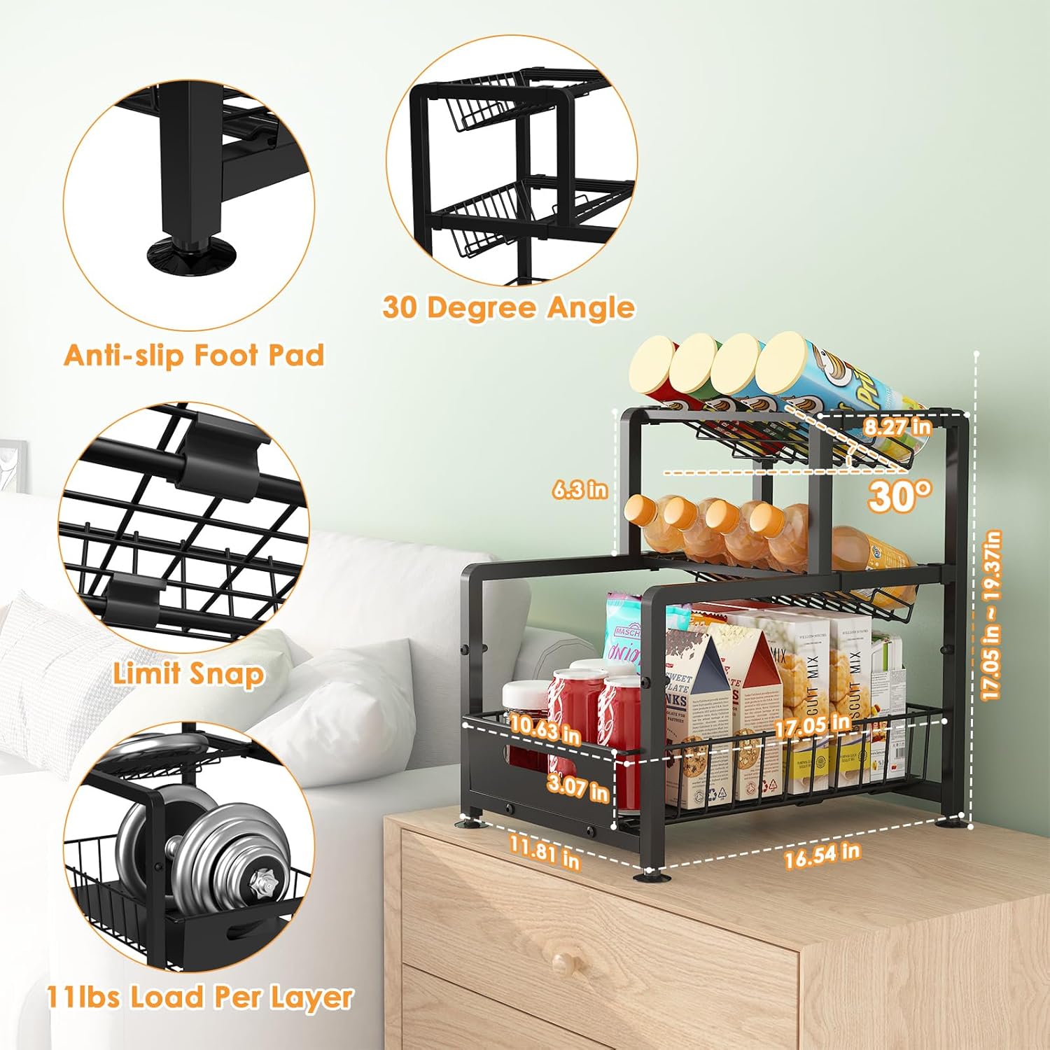 - Sturdy and Load-bearing: The seasoning organizer is made of solid metal and coated with black rust-resistant paint. Overall dimensions are 16.54 βL x 11.81 βW x (17.05β-19.37β)H, 11 lbs load per layer.